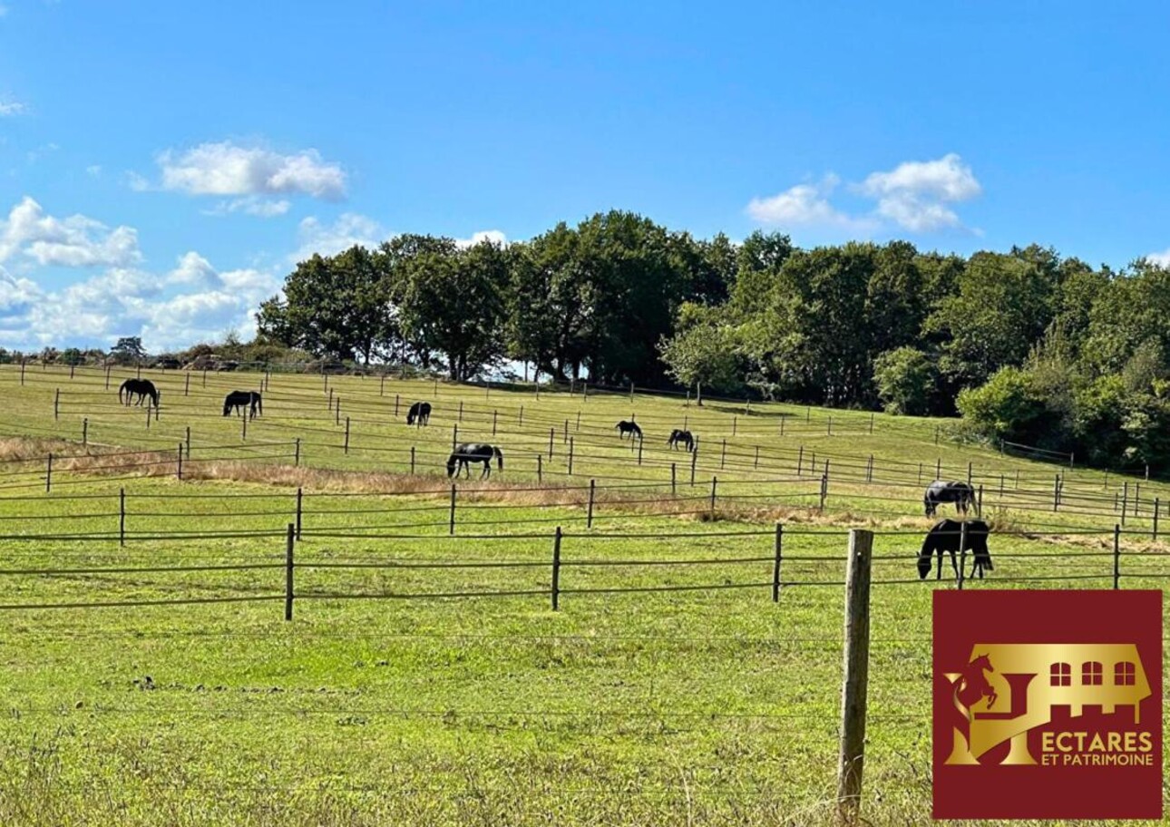 Implantée au coeur de ses terres, la propriété est entourée de prairies soigneusement entretenues et clôturées, ainsi que de bois, dans un environnement particulièrement paisible et préservé.