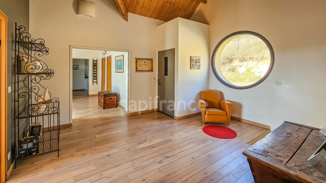 Au rez-de-chaussée de l'habitation, une entrée dessert un vaste salon-séjour, une cuisine , un cellier, un deuxième immense salon qui peut mener à un appartement indépendant.