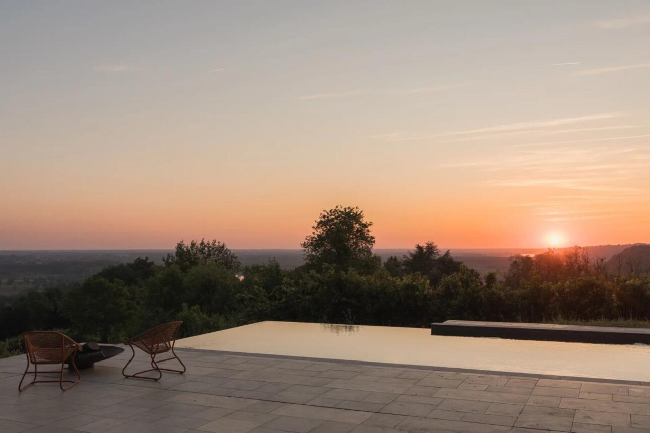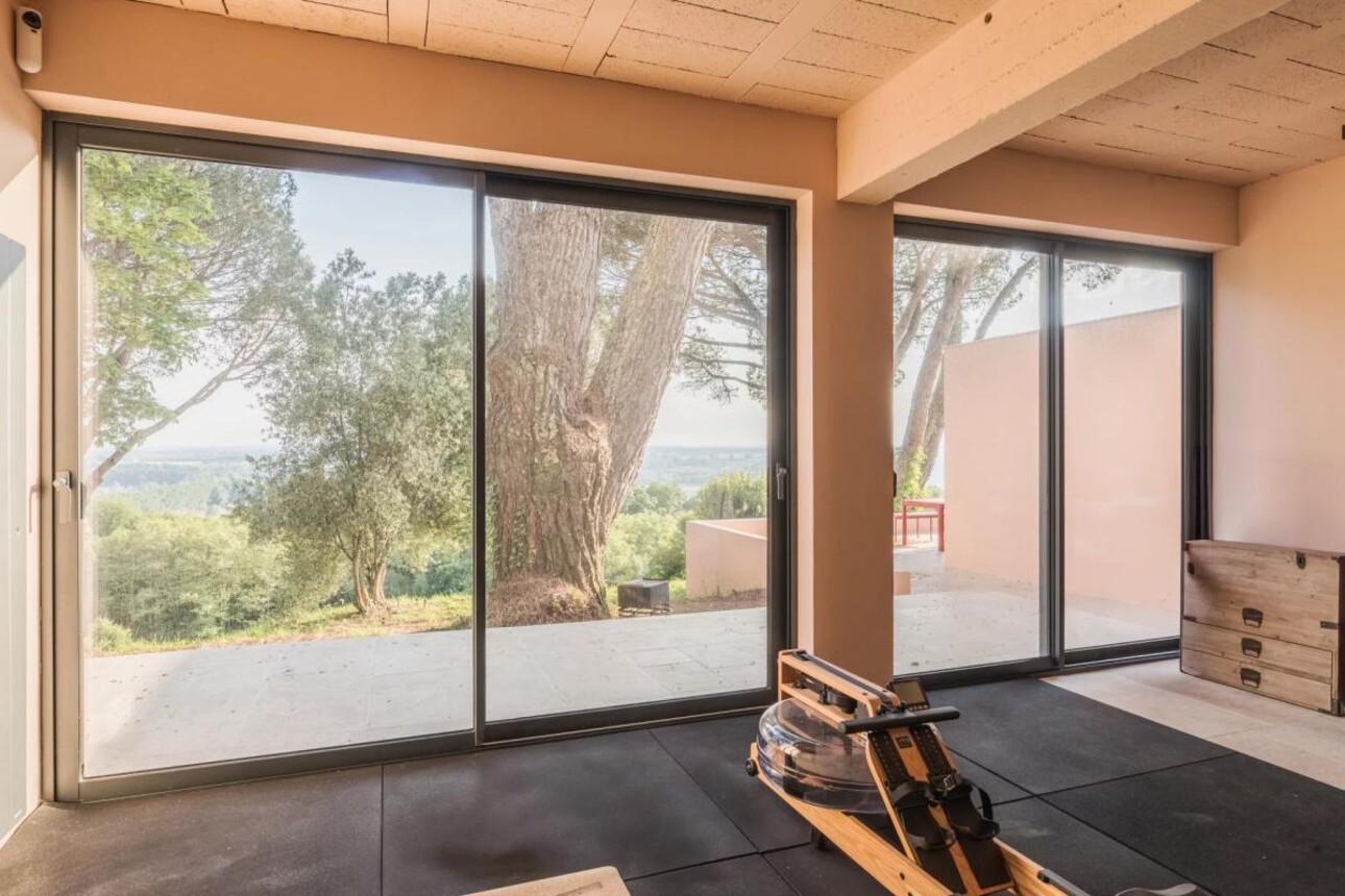 Baignée de lumière tout au long de l'année, la spectaculaire pièce de vie aux lignes pures et larges baies vitrées s'ouvre sur un panorama saisissant. Ici, aucune pollution visuelle ni sonore : seulement le chant des oiseaux et la vue apaisante sur les vignes et la Garonne. Un sentiment rare de calme absolu.