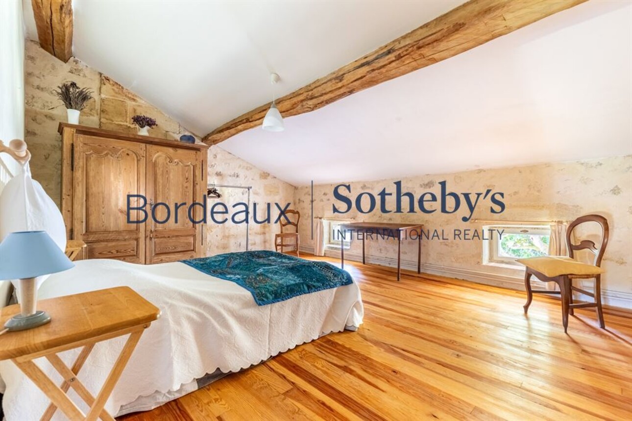 À seulement 35 minutes de Bordeaux, entre vignes et pins, se dévoile une demeure d'exception. Ancien domaine viticole au charme rare, cette sublime chartreuse en pierre d'environ 500 m², déployée en U autour d'une cour intimiste, incarne l'art de vivre à la française.