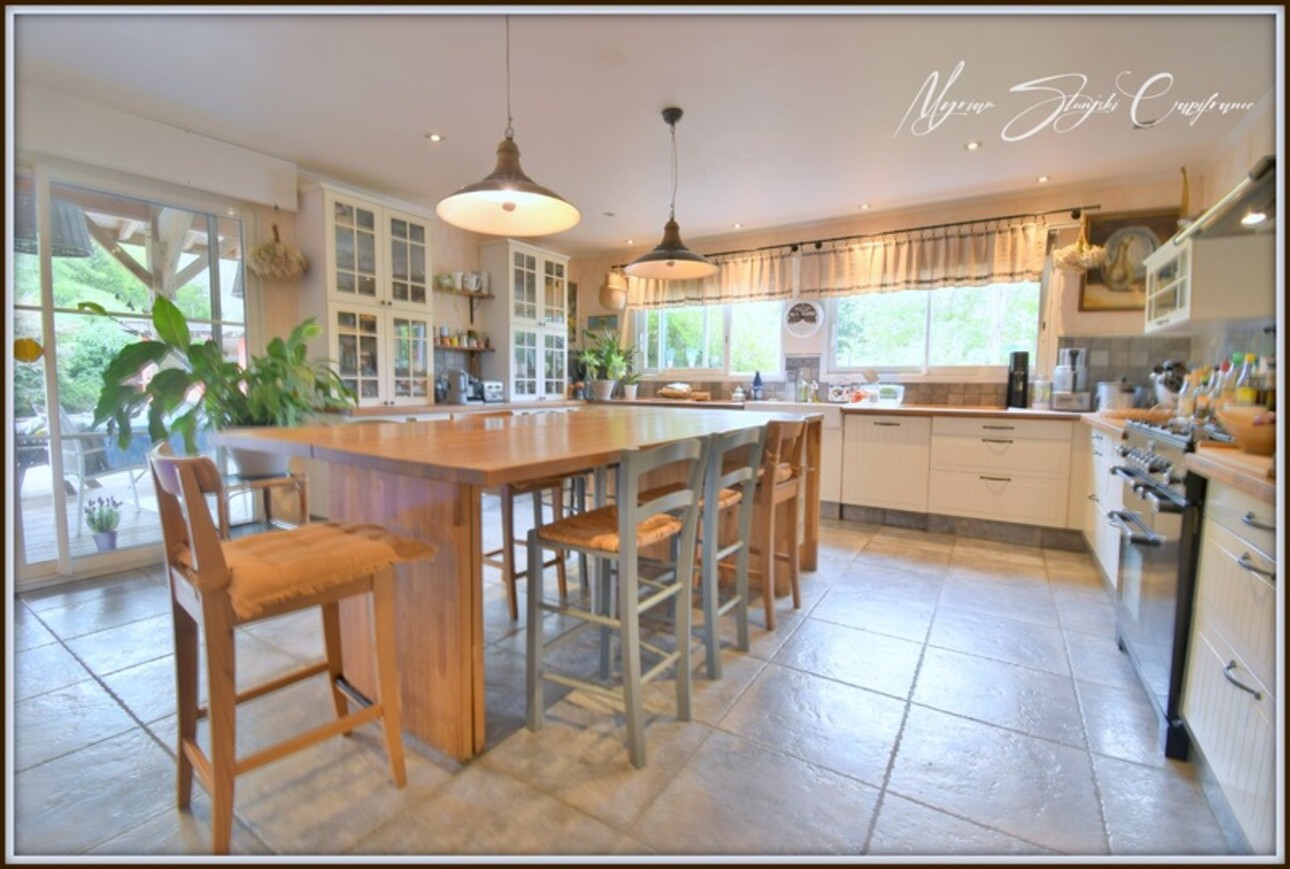 Une cuisine XXL de plus de 30 m² avec îlot central prolonge l'espace de vie et s'ouvre sur une terrasse couverte, idéale pour les repas d'été.