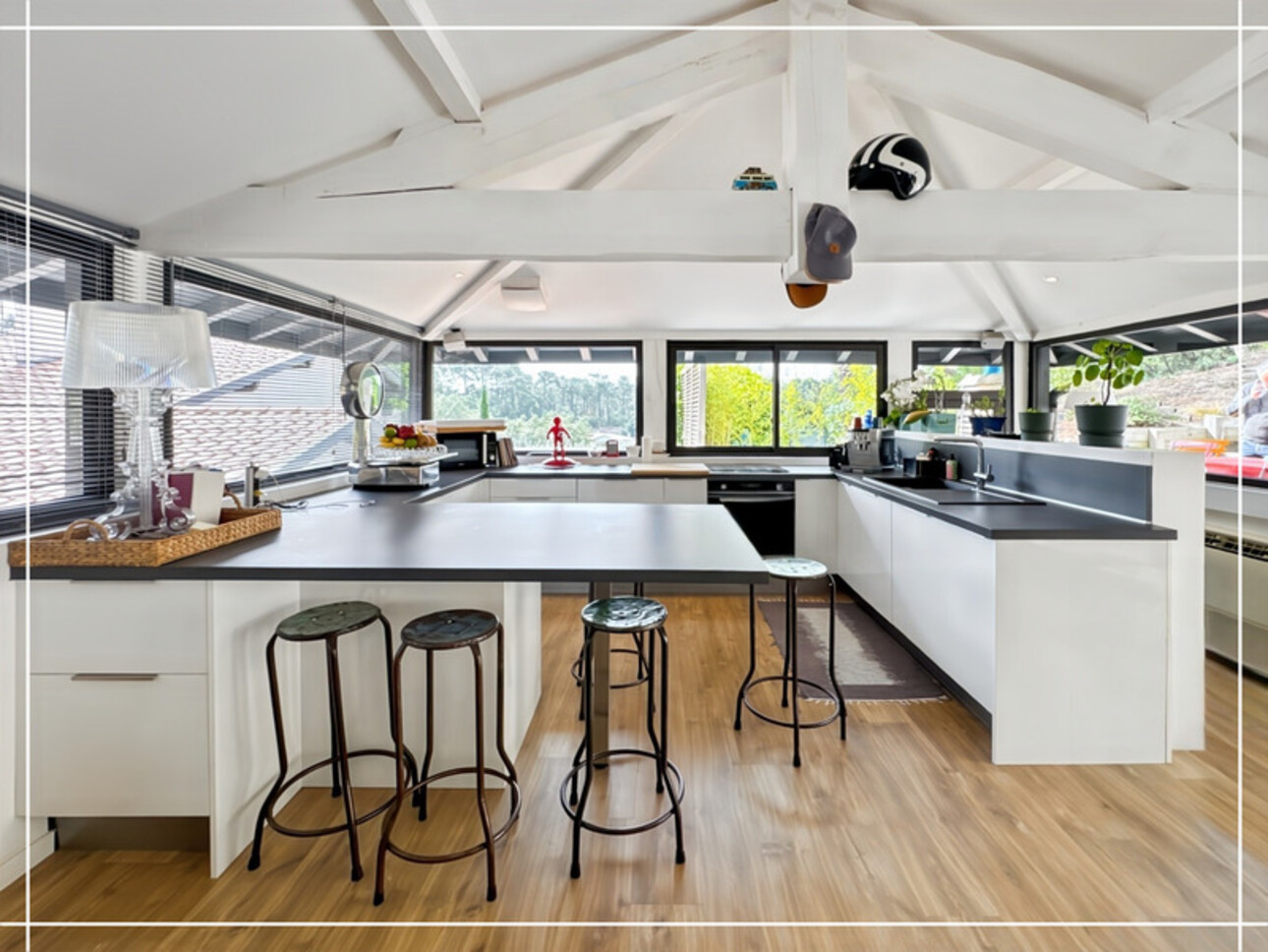 Dès l'entrée, le ton est donné avec une belle cuisine indépendante, spacieuse et parfaitement aménagée, idéale pour recevoir. Elle se prolonge par une vaste pièce de vie salon-séjour, sublimée par une cheminée, créant un espace convivial en toute saison, prolongée par une terrasse dominante offrant une vue dégagée , idéale pour créer un espace détente avec jacuzzi.