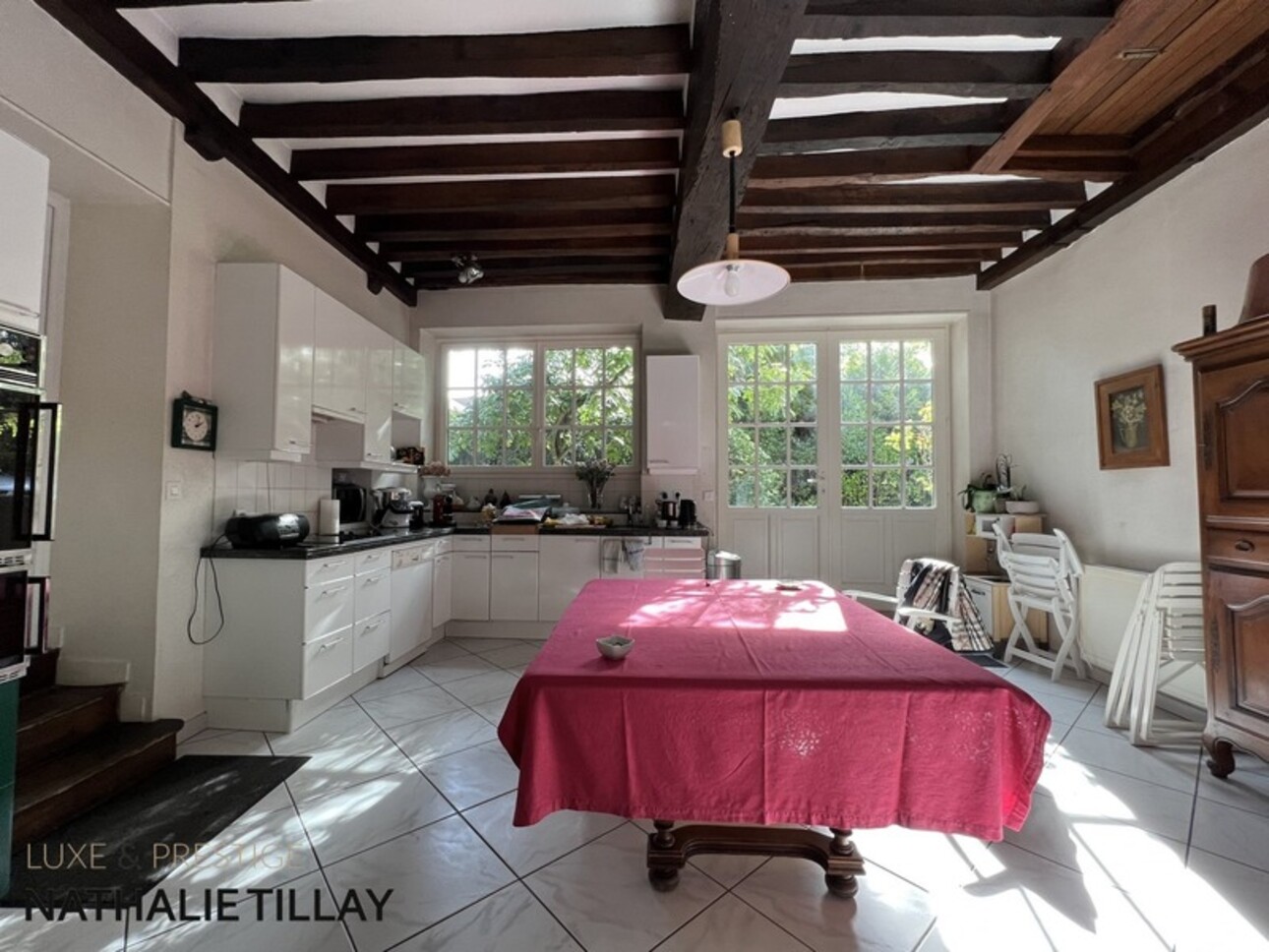 Une belle entrée , une grand cuisine, Un vaste espace de reception de 115 m²comprenant la salle à manger et les deux salons. En étages, 7 grandes chambres, 4 salles de bain/eau. Grenier aménageable. Cave.