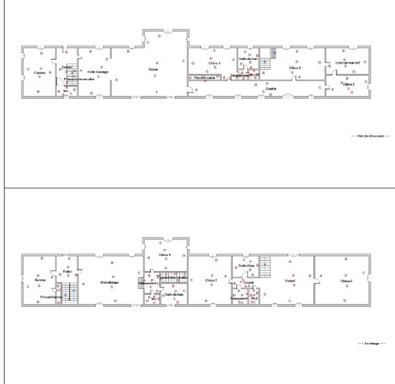 Au 1er étage : un premier espace comprenant :palier, grand salon bibliothèque, 2 chambres, salle de bain.