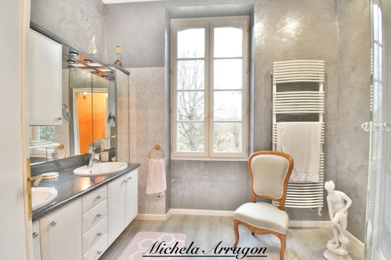 Quatre chambres, un bureau intime et une grande cave de 46 m² viennent enrichir ce cadre de vie où tout invite au confort et à la sérénité.