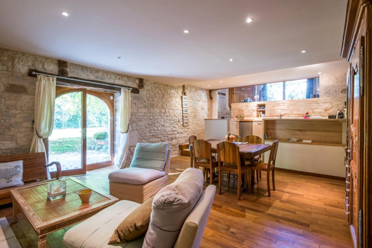 Cette propriété de charme et d'exception est située sur un grand terrain de plus de 1500 m 2, nichée dans un environnement bucolique et sans aucune nuisance. Le jardin est bordé par un ravissant ruisseau, offrant une ambiance sonore apaisante et une atmosphère unique.