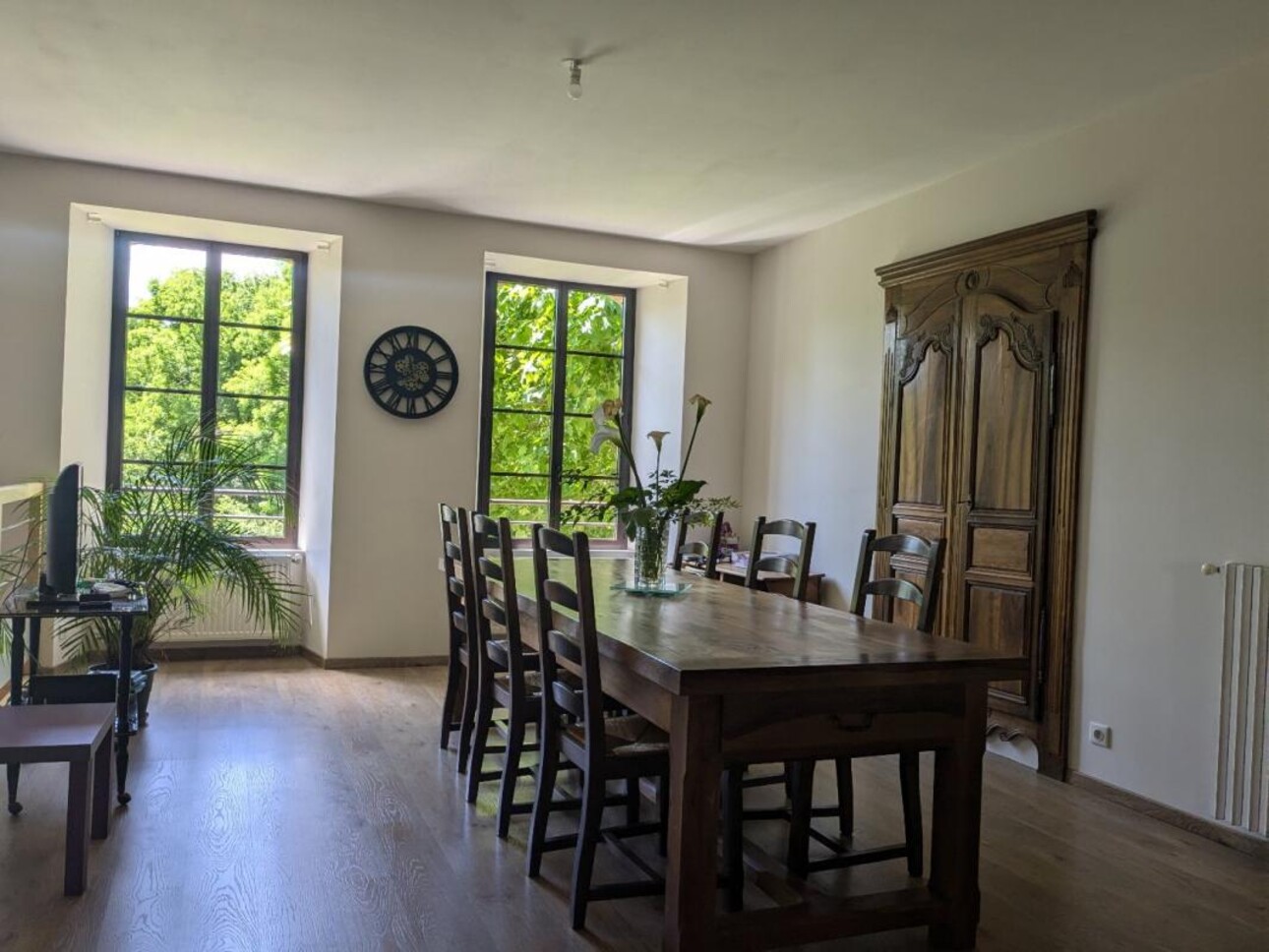 => à l'étage : 3 chambres, 1 salle de bain avec double vasque, douche à l'italienne et baignoire, wc indépendant, 1 salle à manger (+ 32m²), 1 salon avec une souillarde et un ancien cantou (+ 43m²) et 1 cuisine entièrement équipée (environ 30m²).