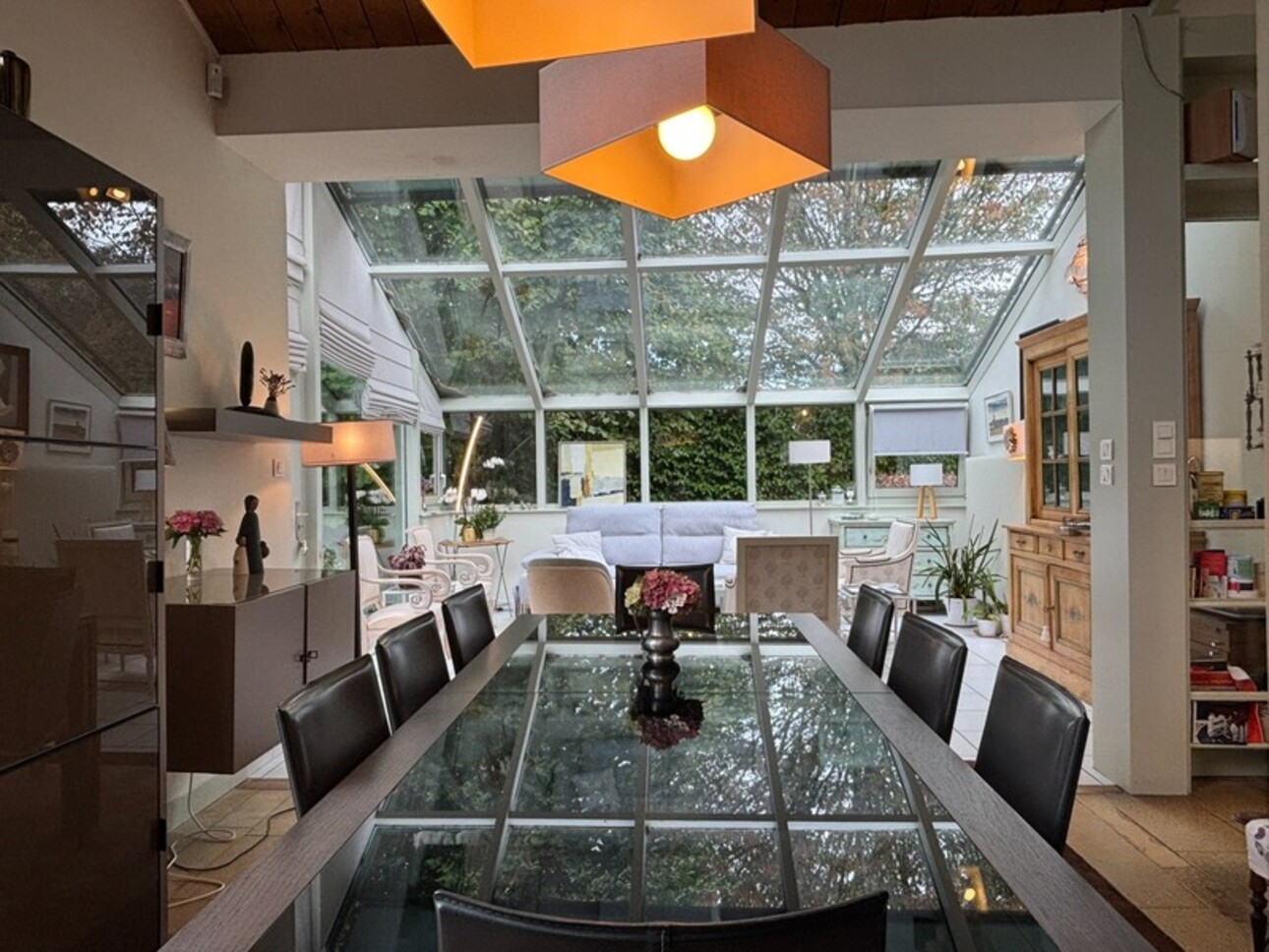 • Un troisième espace salon sous une magnifique verrière, véritable pièce signature de la maison, baignée de lumière et ouverte sur le jardin.