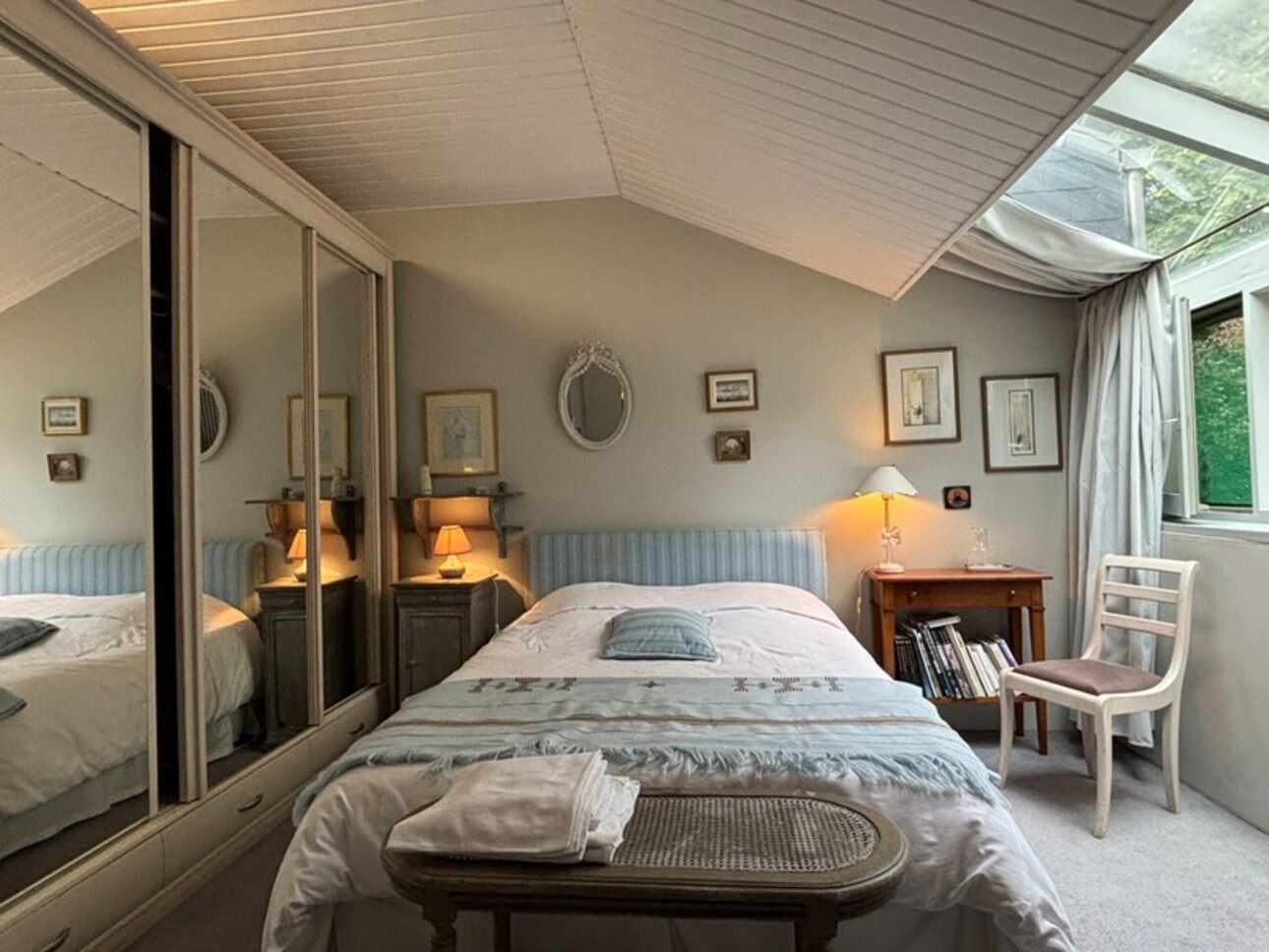 • Une chambre avec mezzanine et salle d'eau privative, vue imprenable sur le parc.