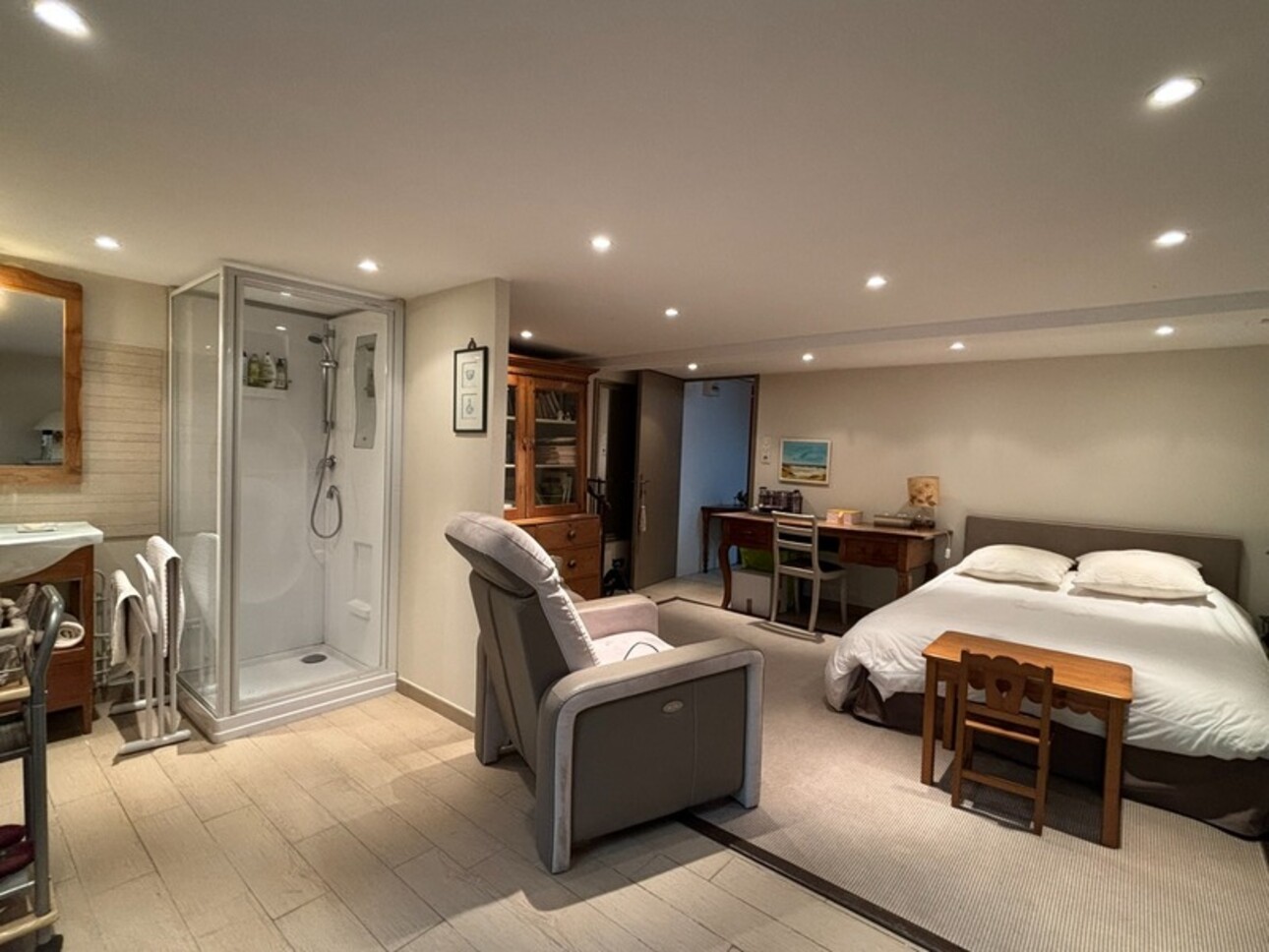 • Une chambre avec salle d'eau intégrée, idéale pour accueillir famille, invités ou projet indépendant