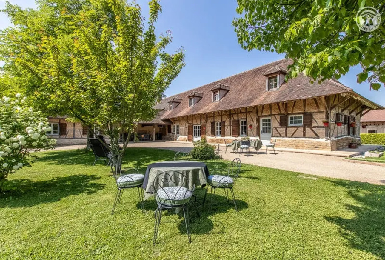 L'ensemble s'articule autour dune cour paysagée avec îlot de verdure, terrasses et vastes espaces de stationnement. La demeure principale, ferme emblématique des hospices de Louhans, déploie une surface habitable généreuse. Elle offre un vaste salon-salle à manger, une cuisine équipée, une mezzanine ouverte, cinq chambres et quatre salles d'eau. Chaque espace a été pensé avec sens du détail et respect de l'esprit des lieux. Une buanderie, une cave et un bureau complètent ce niveau d'équipement.