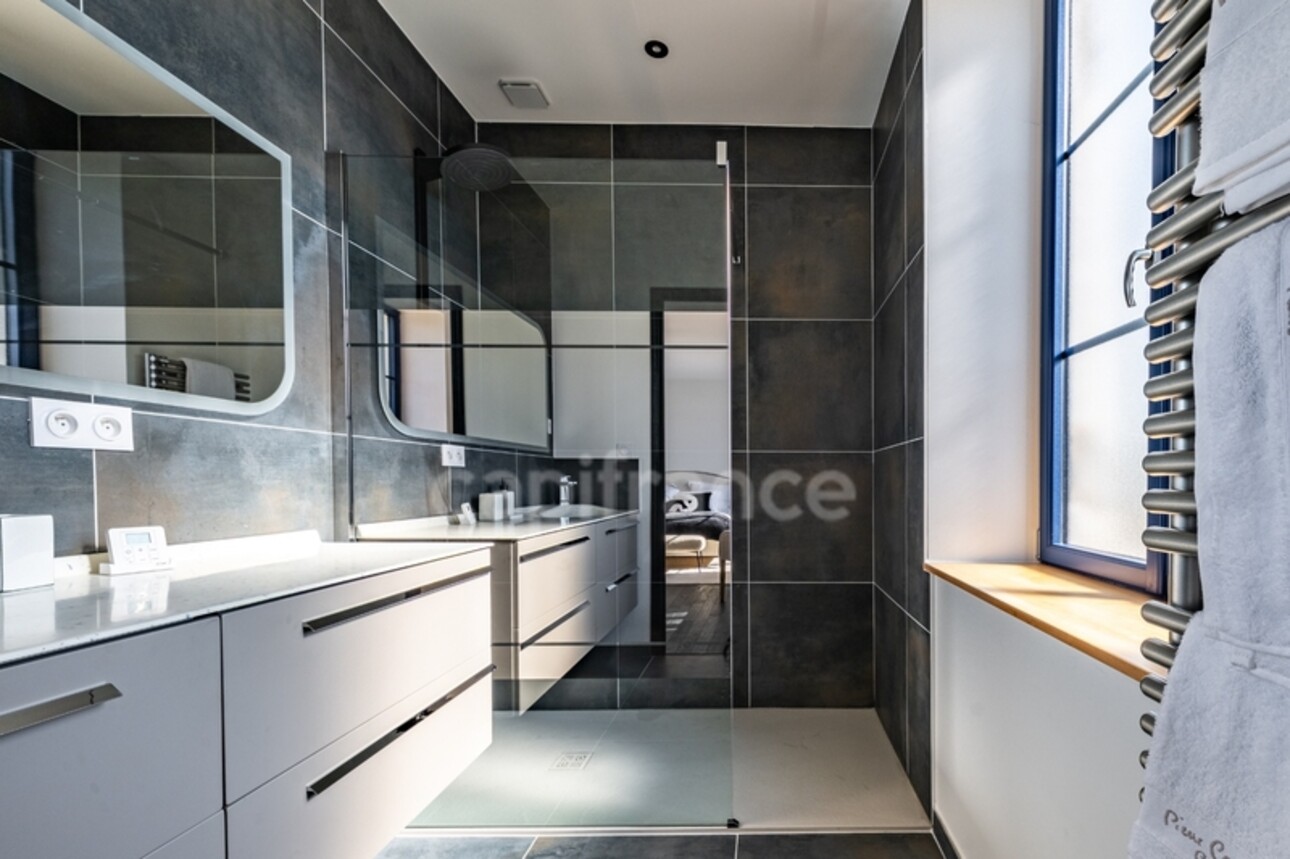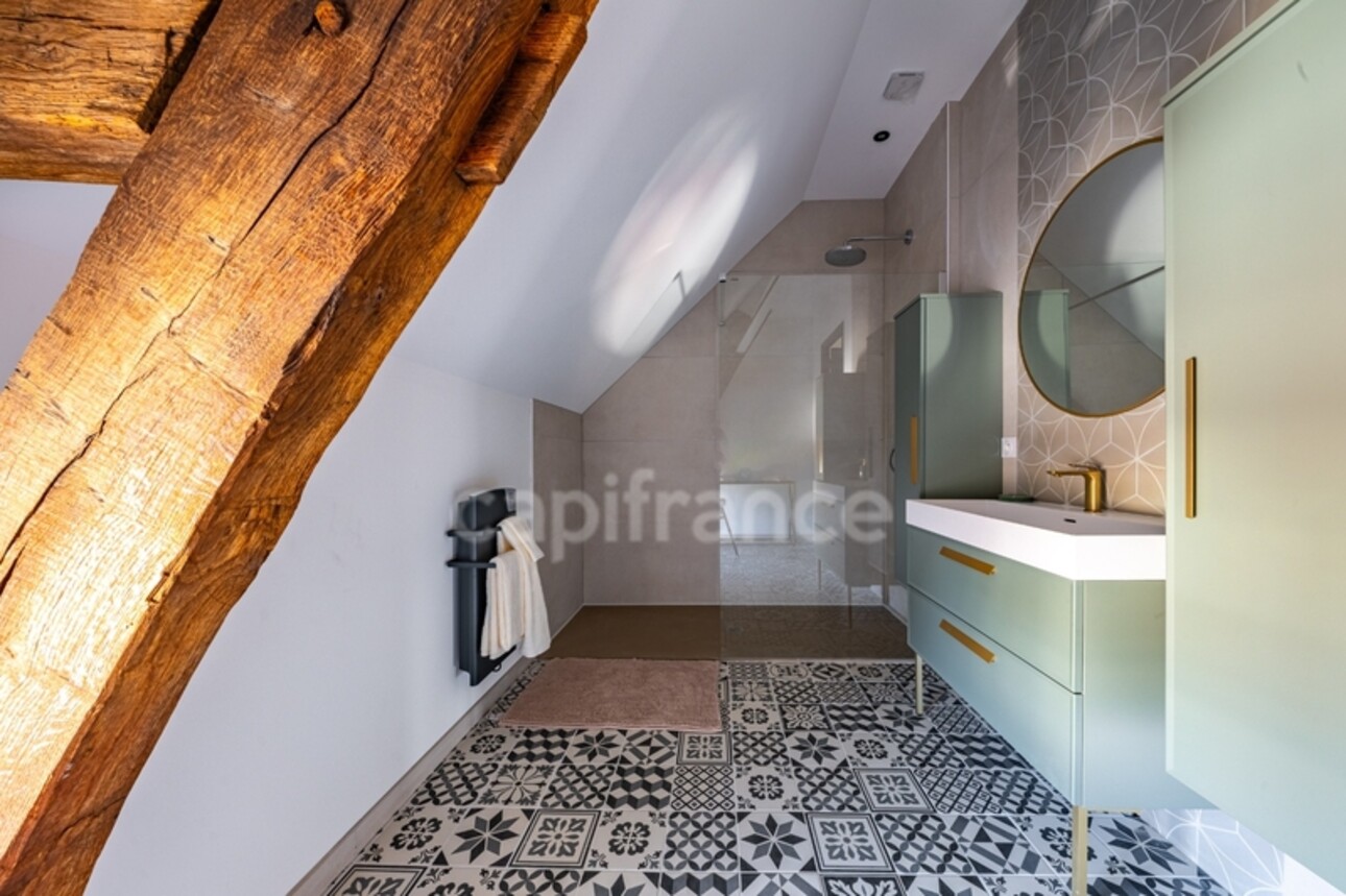 Depuis l'entrée, un magnifique escalier d'époque mène à l'étage supérieur qui distribue quatre chambres très spacieuse, dont une suite parentale avec salle d'eau privative et dressing, une salle de bains avec douche et baignoire et un WC.