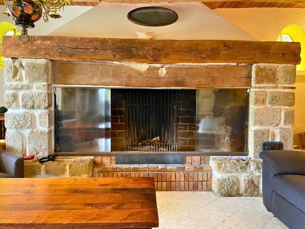 Le chauffage de la propriété est assuré par un système central combiné et pilotable sur trois sources : géothermie, récupération de chaleur via la cheminée de type âtre, et chaudière fioul, garantissant confort et efficacité tout au long de l'année.