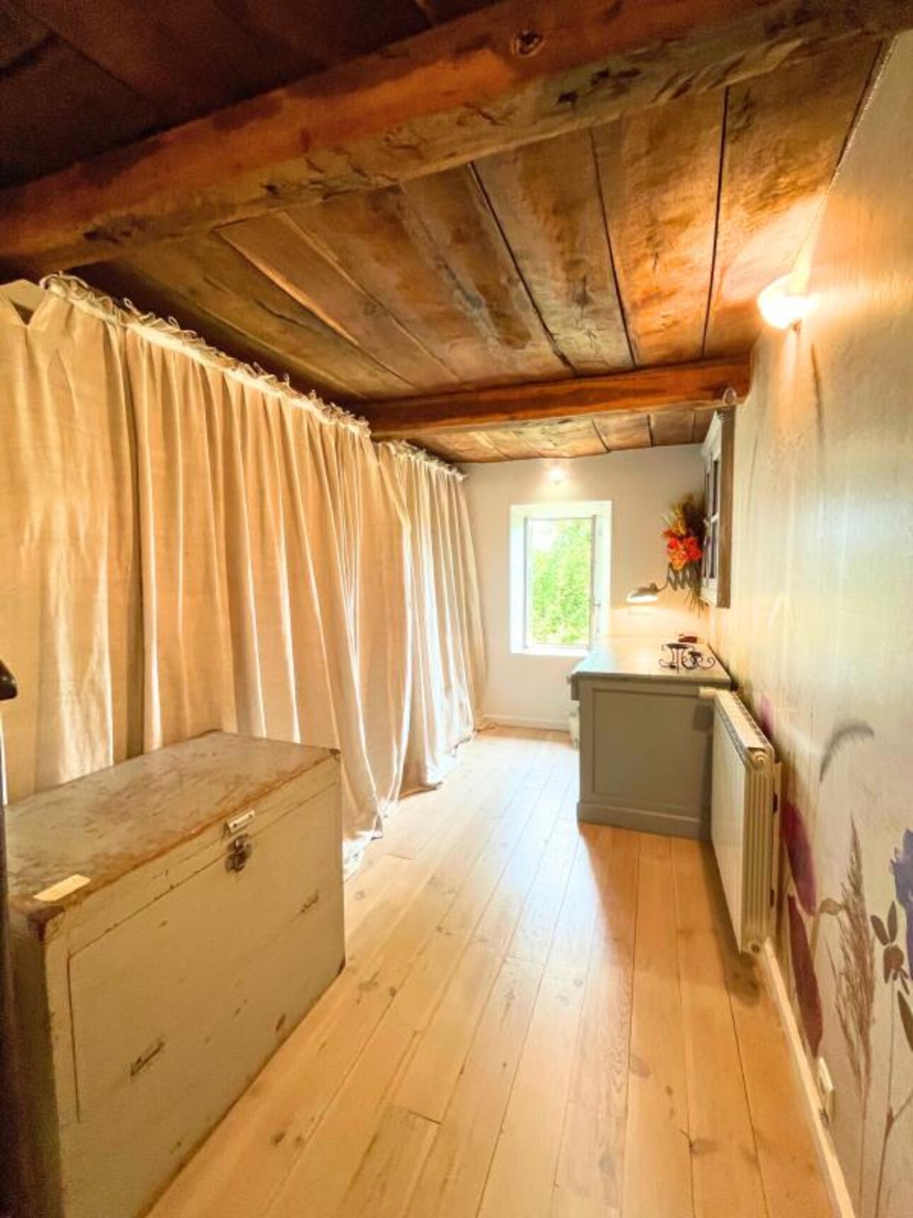 L'étage se compose d'un grand bureau et de trois chambres, dont deux suites avec dressing, salle de bains ou salle d'eau avec WC.