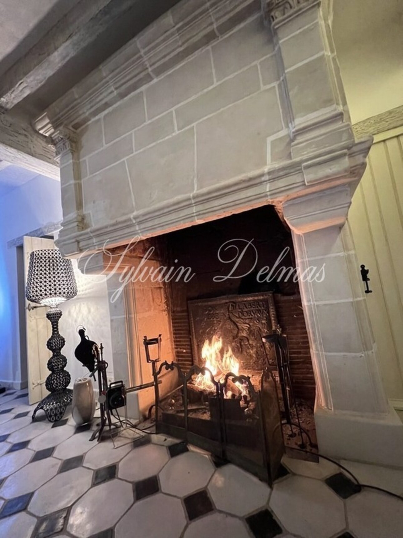 - RDC : Une entrée avec dressing dissimulé derrière la porte d'une vielle armoire, un accès direct à l'ascenseur desservant les quatre niveaux. Un salon, salle à manger de 50 m² avec une double exposition et une double porte fenêtre donnant sur la terrasse côté Tour, une sublime cheminée en pierre, et son sol en pierre à cabochons, une cuisine de 25 m2 entièrement équipée "Gaggenau" (four, cuisson vapeur, cuisson gaz, réfrigérateur, lave vaisselle, nombreux placards etc...) WC dans la tour. une lingerie.