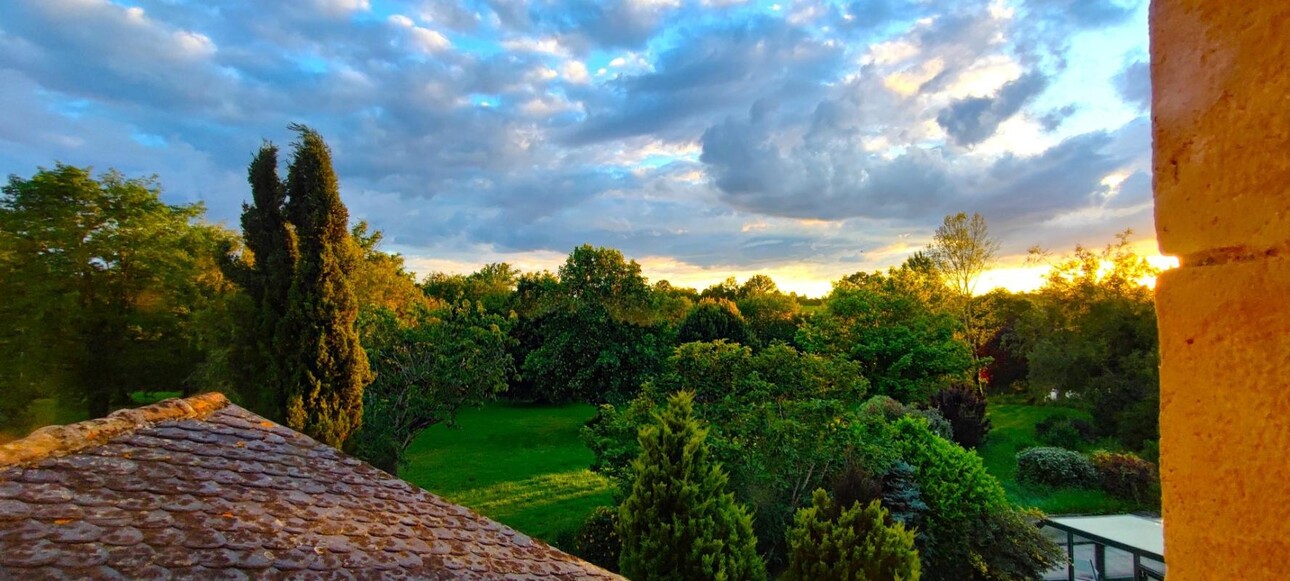 Une grande veranda en bois et double vitrage, d'environ 30m², exposée plein Ouest est ouverte sur le parc arboré, le lac et la piscine. Elle permet de profiter aussi en arrière saison des couchers de soleil sur la campagne environnante.
