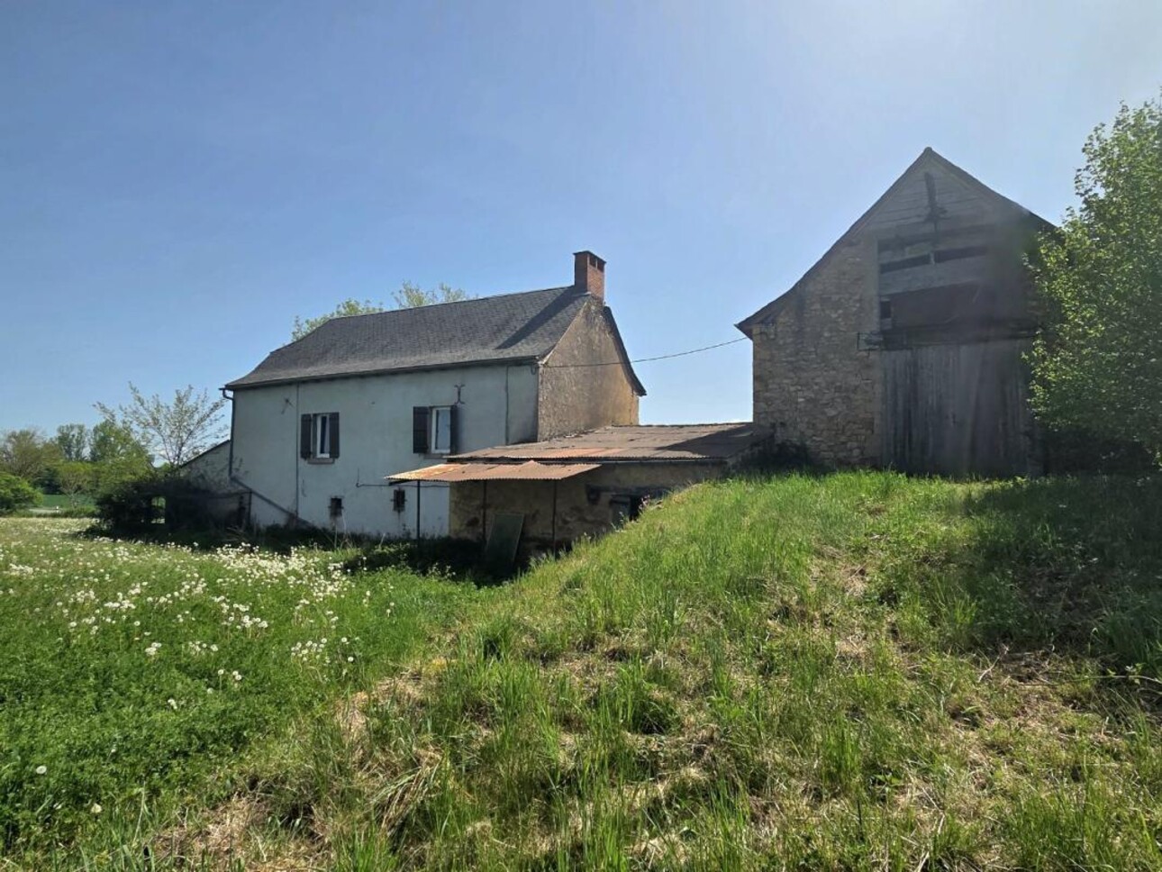 Anglars Saint Felix, ancien corps de ferme en pierres avec maison de 193m² habitables et sa grange sur son terrain de près de 2 400m²