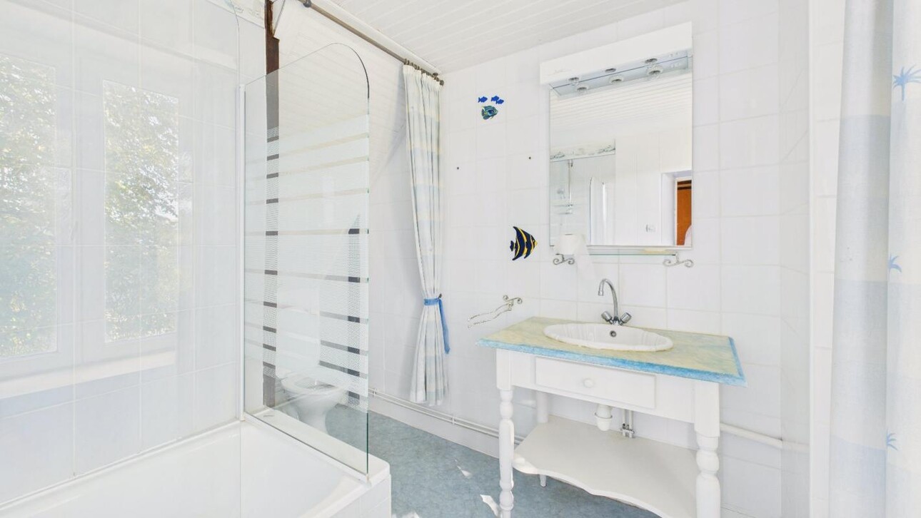 • La maison principale : Sur 3 niveaux, cette bâtisse a été conçue pour une activité de chambres d'hôtes. Elle comprend une jolie véranda, une grande salle à manger et plusieurs chambres, chacune avec sa propre salle d'eau et WC. Sa toiture en ardoises est récente et en excellent état.