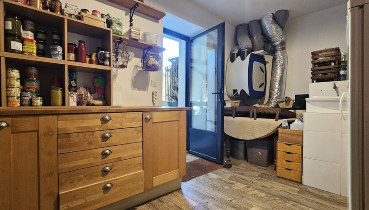 Concernant les pièces d'eau, une buanderie-cellier vous offrira un accès pratique et direct sur l'abri voitures ce qui vous permettra de décharger vos courses facilement tout en étant protégé du soleil comme de la pluie.
