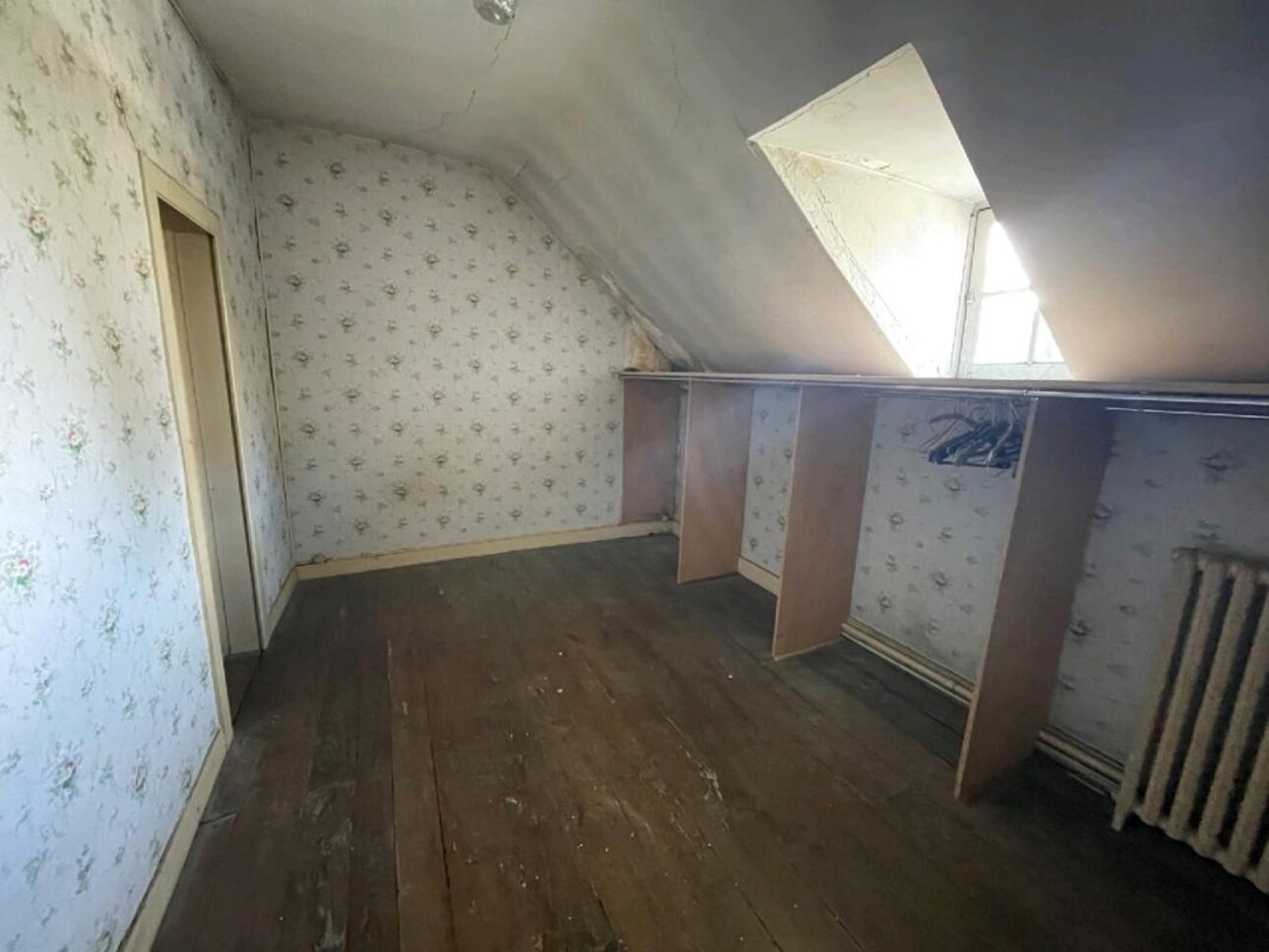 Au second : deux grandes chambres dont une avec alcôve (21 m² ; 32 m²), deux pièces mansardées et une salle de bains sont à réhabiliter entièrement.