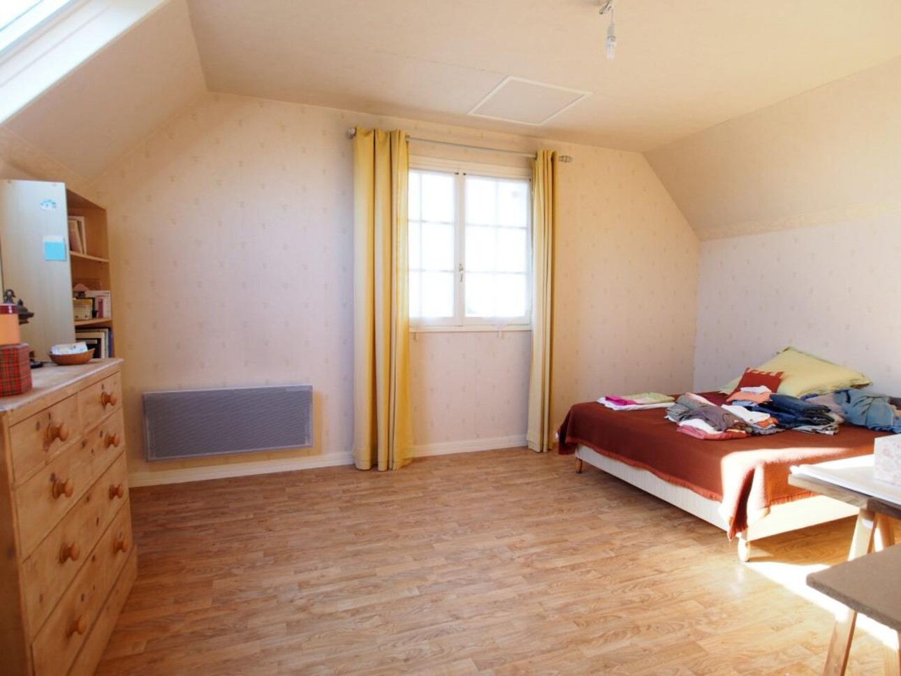 A l'étage, un palier dessert deux chambres, une pièce de rangement ainsi qu'une salle de bains avec WC.