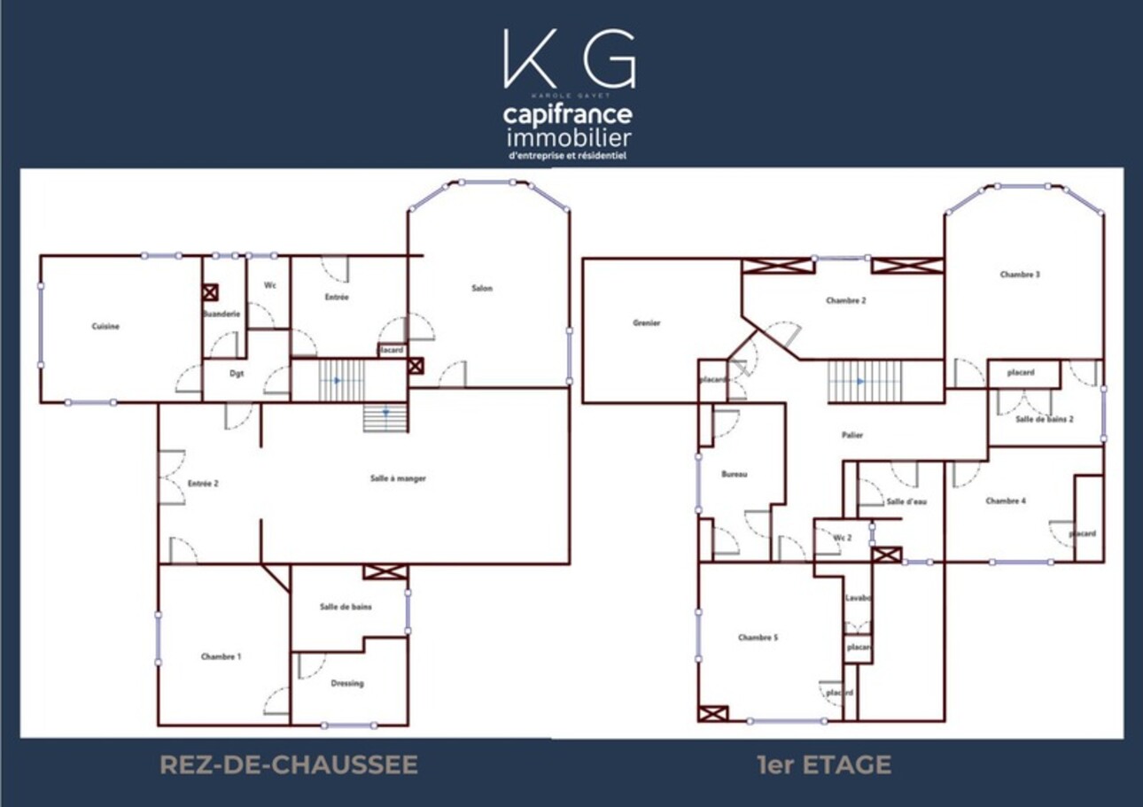 - Des espaces de vie généreux pour accueillir une famille : cuisine 17 m2, séjour 46 m2, salon 20 m2, 5 belles chambres (dont une au rez-de-chaussée) et possibilité d'une 6e chambre,