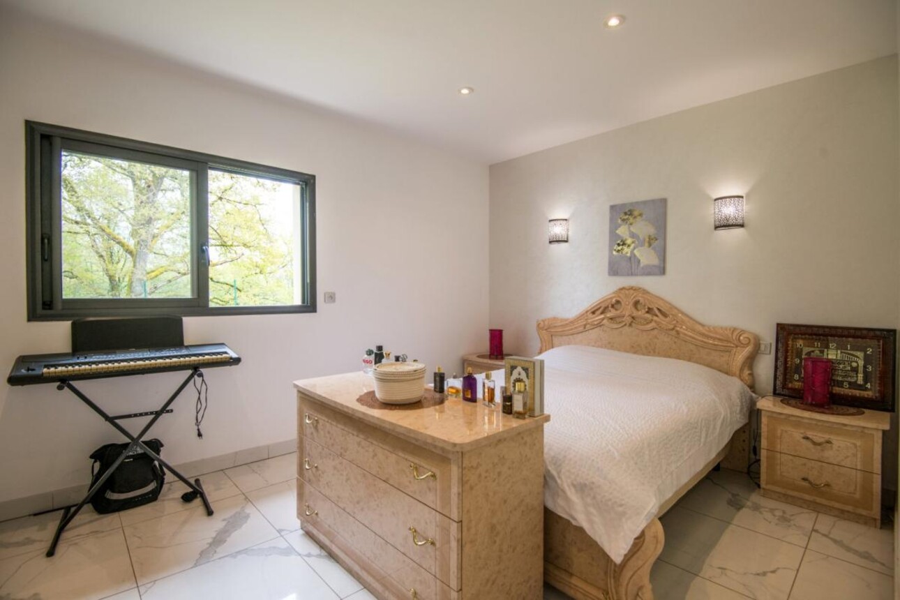 Édifiée sur un terrain paysager et arboré d'environ 4 500 m², entièrement aménagé avec système d'arrosage automatique, la propriété bénéficie d'une piscine chauffée de 12 x 5 mètres avec volet roulant électrique et d'un élégant pool house, offrant un cadre de vie privilégié et discret.