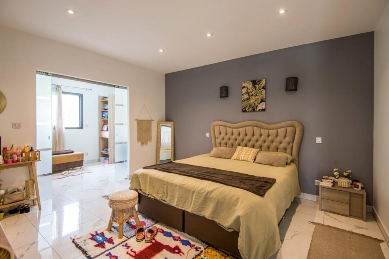 À l'étage, accessible par un escalier design avec capteurs lumineux, quatre chambres spacieuses avec dressings (20 à 28 m²) bénéficient toutes d'un accès terrasse et d'une vue panoramique imprenable. Une seconde salle d'eau complète cet espace nuit.