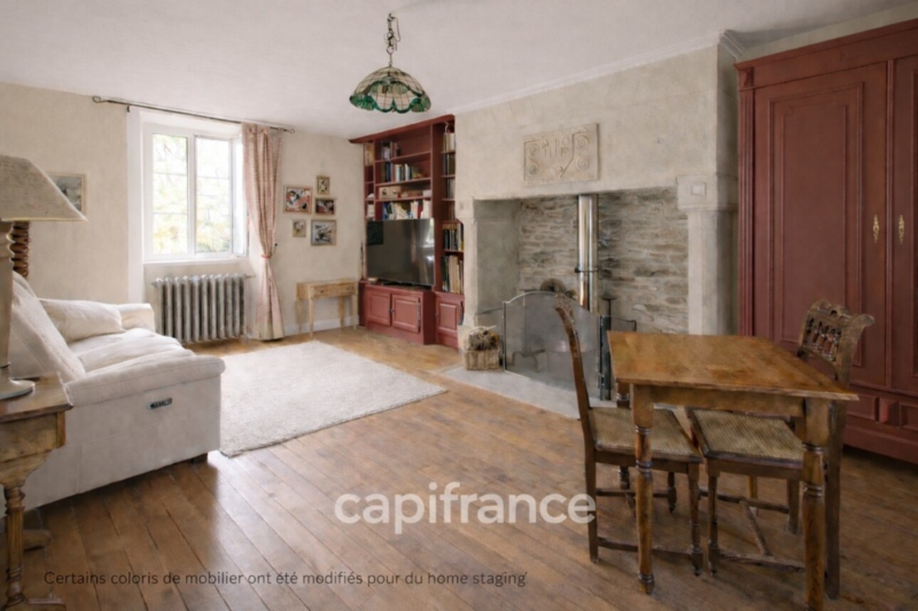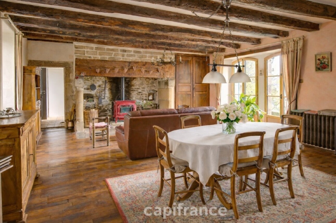 Au rez-de-jardin, accessible par une porte ancienne en bois, vous découvrirez une pièce de vie chaleureuse, sublimée par une cheminée en pierre, un parquet élégant et de superbes poutres apparentes. Cet espace bénéficie d'une luminosité naturelle exceptionnelle grâce aux larges ouvertures donnant sur l'extérieur et l'agréable terrasse derrière la maison.