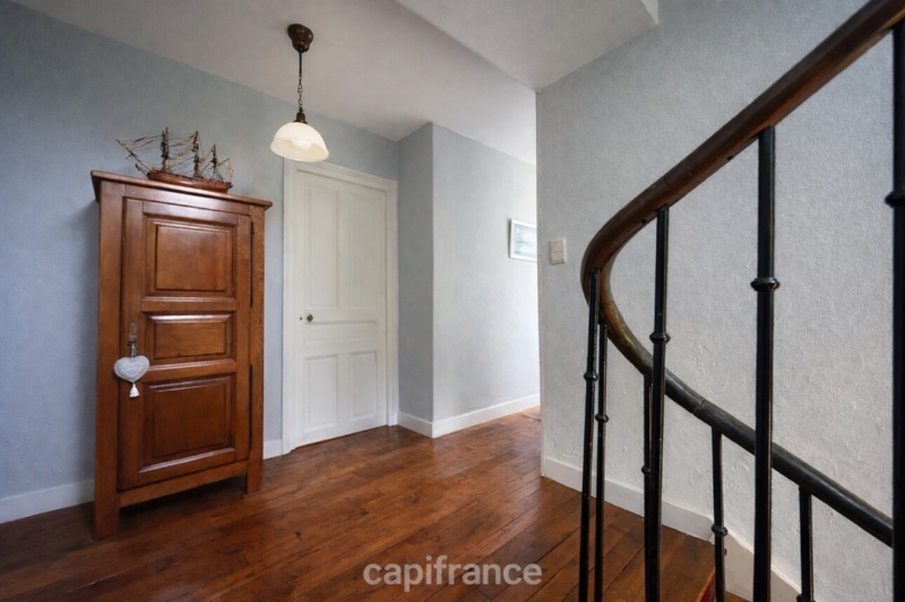 Un bel escalier ancien en bois, doté de sa balustrade en fer d'époque, mène au deuxième étage entièrement rénové avec soin. Celui-ci propose deux chambres supplémentaires ainsi qu'un espace intermédiaire polyvalent, idéal pour une salle de jeux, ainsi qu'une salle d'eau. Cet étage offre également la possibilité d'aménager jusqu'à trois chambres selon vos besoins.