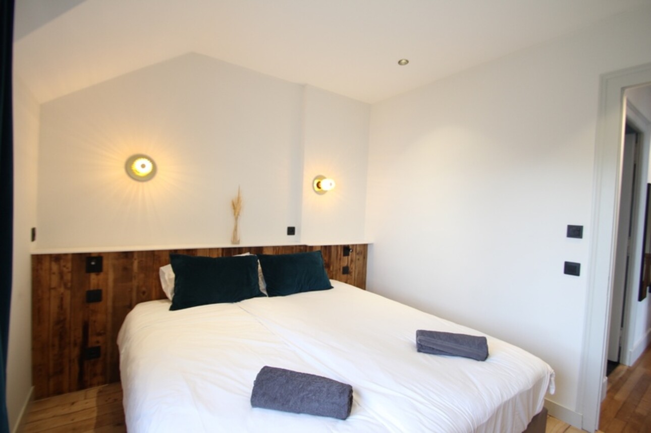 Dès l'entrée, les volumes et la luminosité séduisent immédiatement. L'espace de vie s'articule autour d'un grand séjour baigné de lumière, ouvert sur une cuisine neuve, moderne et parfaitement équipée, conçue pour recevoir et profiter pleinement de la vue sur le lac.