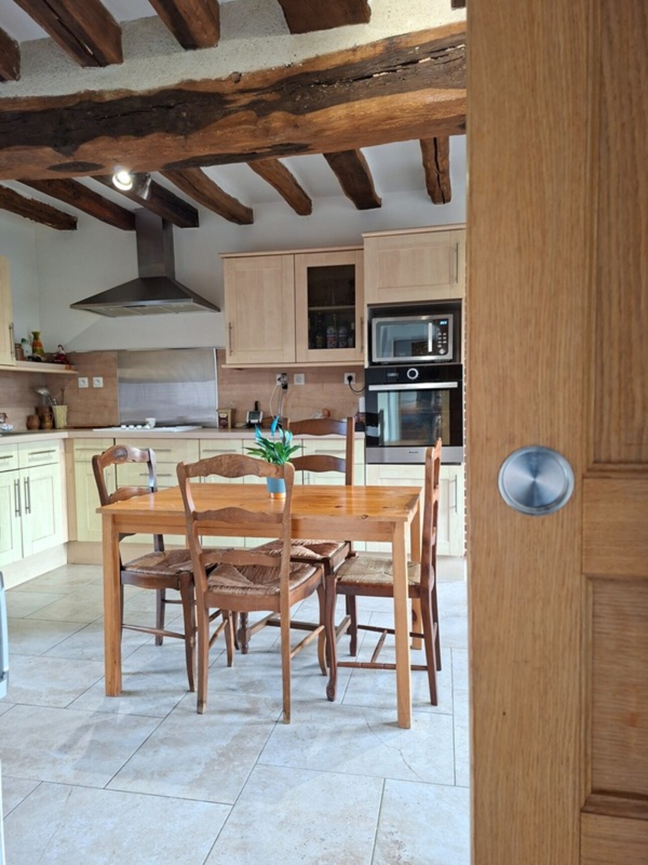 Bercée de lumière du matin au soir, et bordée par ce coin boisé, cette longère entièrement rénovée de plus de 160 m2