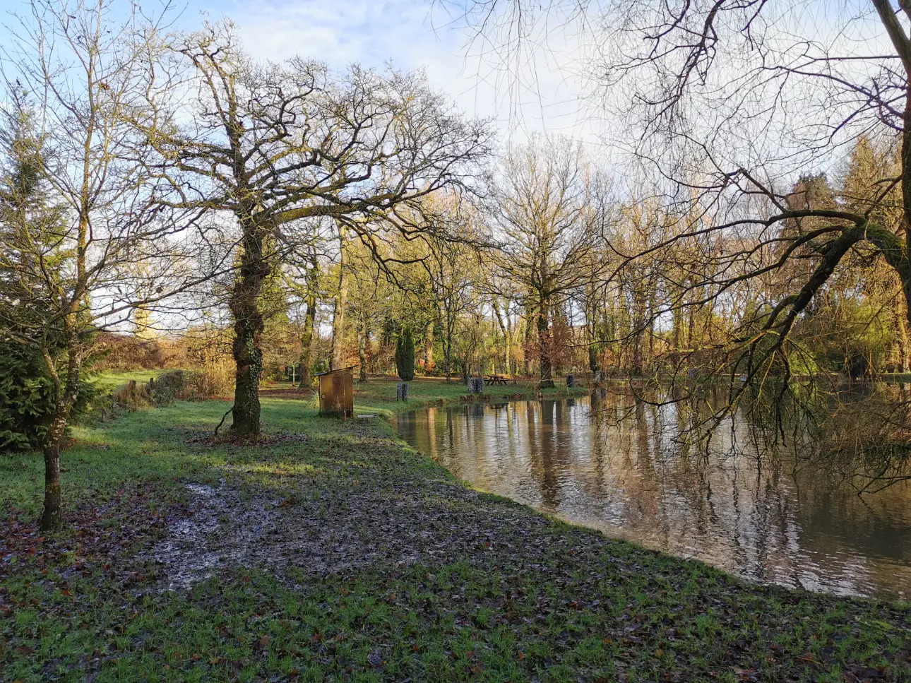L'étang dans lequel on retrouve gardons, carpes communes, carpes koï et un peu de brochets est alimenté par sources.