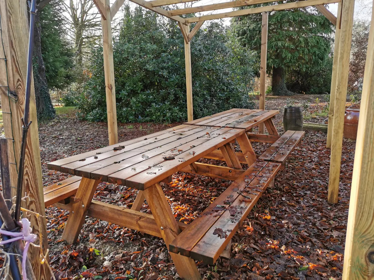 De nombreuses espèces tels Rhododendrons, saule crevette, palmier, bananier égayent le parc. Vous disposerez en complément d'un grand abri et d'une caravane. Accès facile toute l'année et possibilité de stationnement pour plusieurs voitures sur zone empierrée.