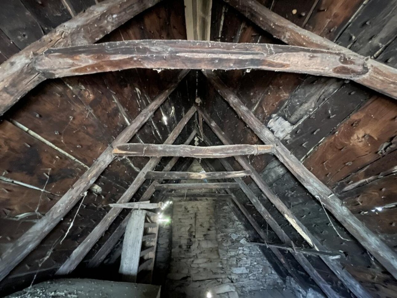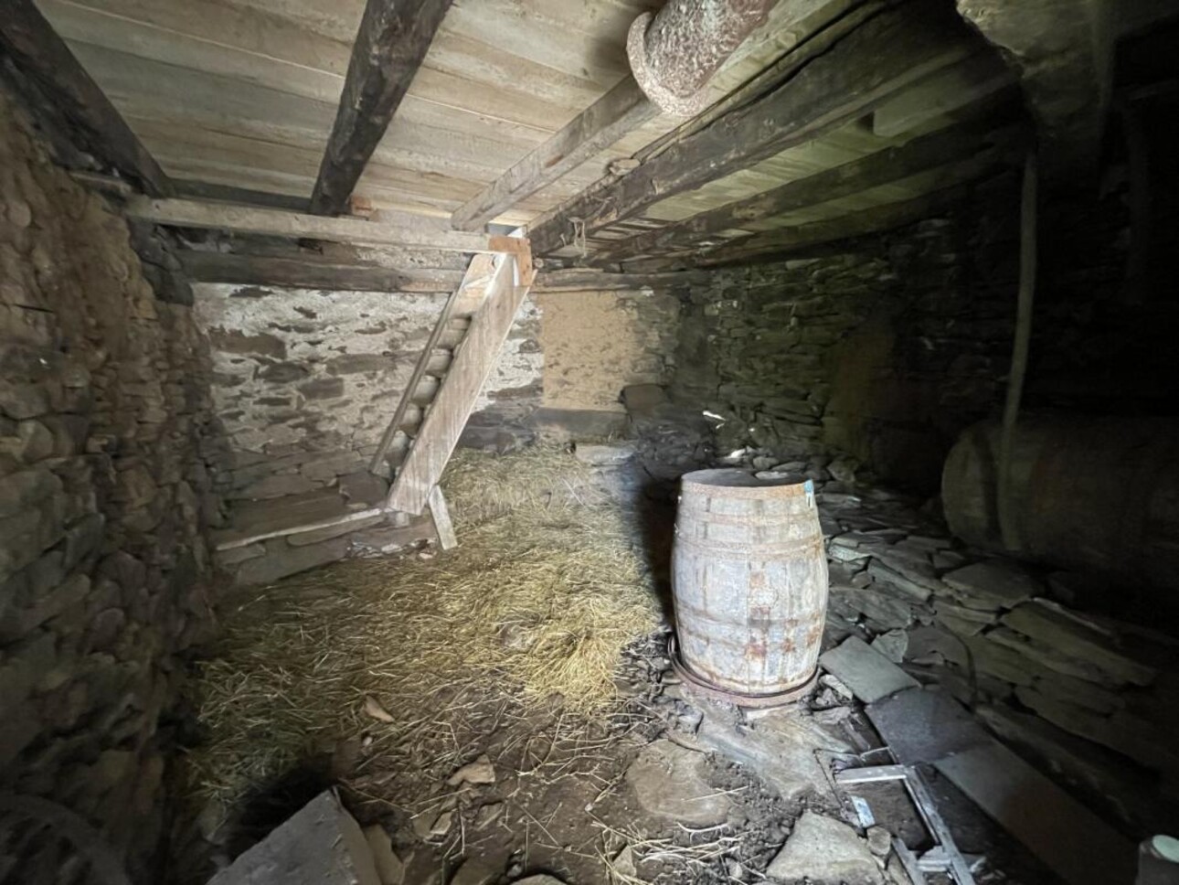 La maison est composée de deux pièces - une pièce à vivre de 28m² avec cheminée et une chambre de 19m². Au dessus il y a deux greniers. En dessous, deux caves. Toiture de la maison et charpente en bon état.