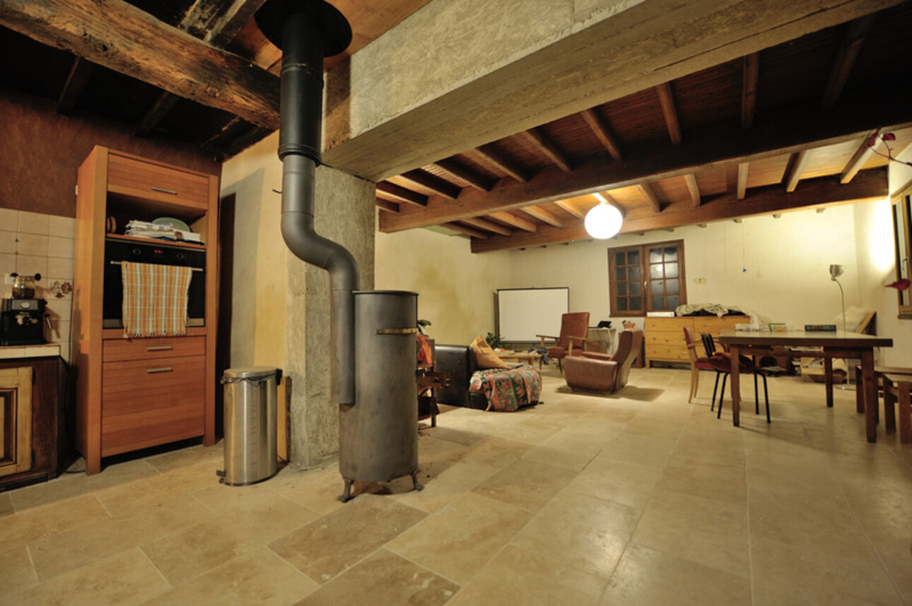 Le travertin au sol, les enduits terre/paille, la chaleur du poêle : un cocon naturel, apaisant, où l'on se sent bien dès les premières minutes. Un lieu qui invite à ralentir, à s'ancrer.
