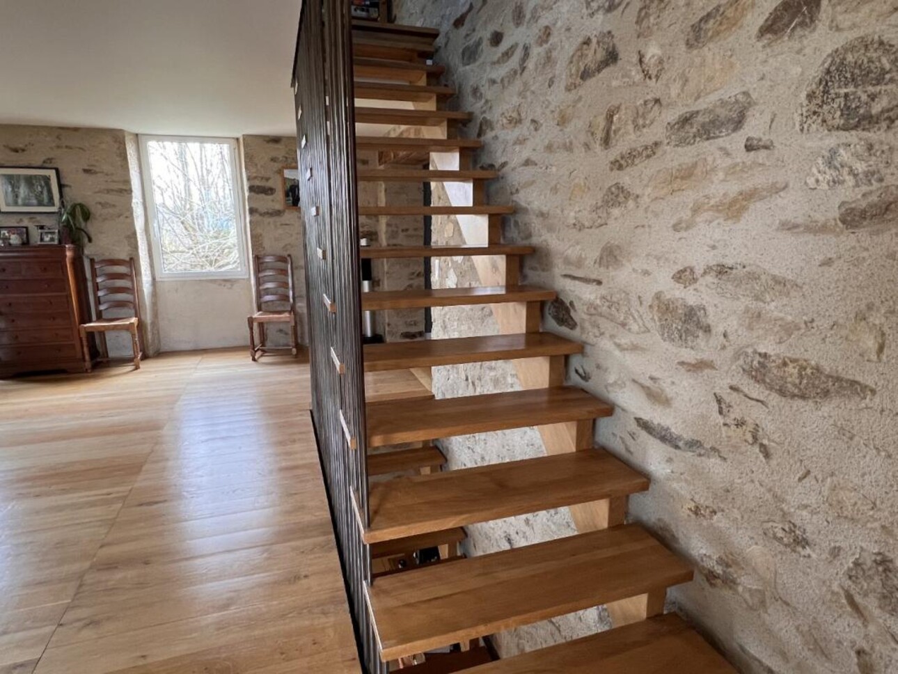Il faut noter la qualité des matériaux qui ont été utilisés lors de la rénovation (ex: parquet chêne au 1 er étage, parquet châtaignier au second étage et voliges en peuplier) . Tout cela donne une atmosphère particulièrement chaleureuse.