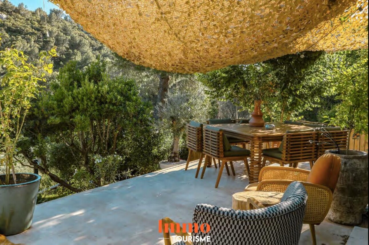 Le jardin, d'environ 500 m², aménagé en restanques, propose plusieurs terrasses ombragées. Un projet de piscine Piscinelle (6×2,5 m) est validé et pourra être transmis : un atout déterminant pour renforcer l'attractivité en saison.