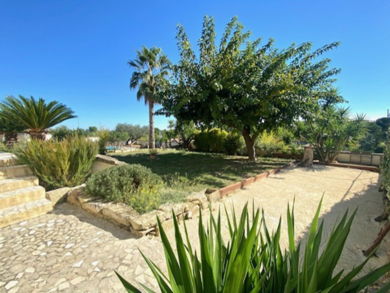 La propriété s'étend sur un terrain sans vis-à-vis, exposé plein sud, avec une vue panoramique dégagée sur la garrigue. Un cadre rare et recherché, idéal pour les amoureux de tranquillité, de lumière et d'espaces ouverts.