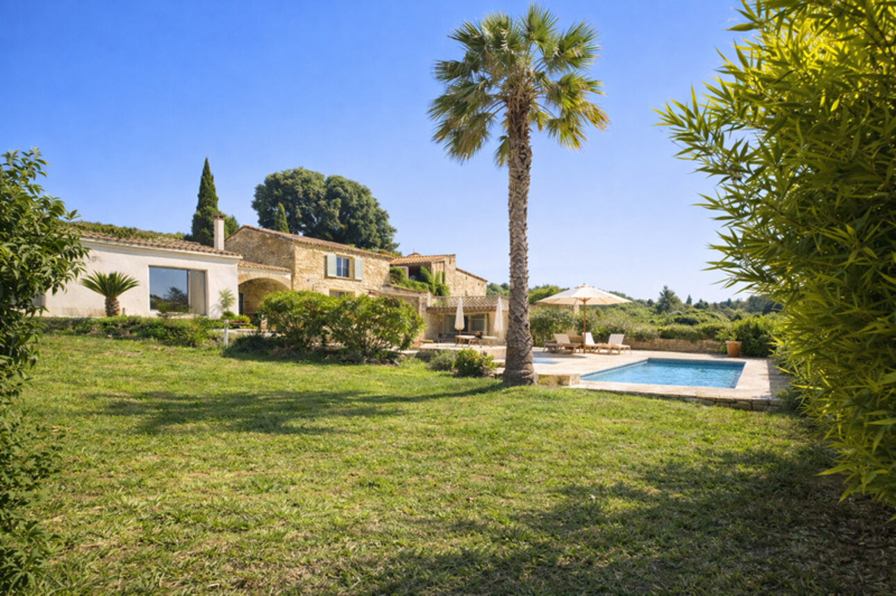 À l'abri des regards, le jardin paysagé de 1300 m², exposé plein sud, s'étire comme une respiration. Il accueille une piscine, un jacuzzi, une cuisine d'été ainsi que plusieurs espaces ombragés, propices aux longues journées méditerranéennes.