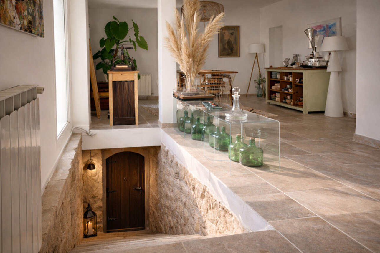 Derrière ses murs patinés par le temps, la maison révèle des volumes généreux et lumineux, ouverts sur les paysages environnants. La circulation y est fluide, les perspectives toujours tournées vers l'extérieur, dans un dialogue constant avec la nature.