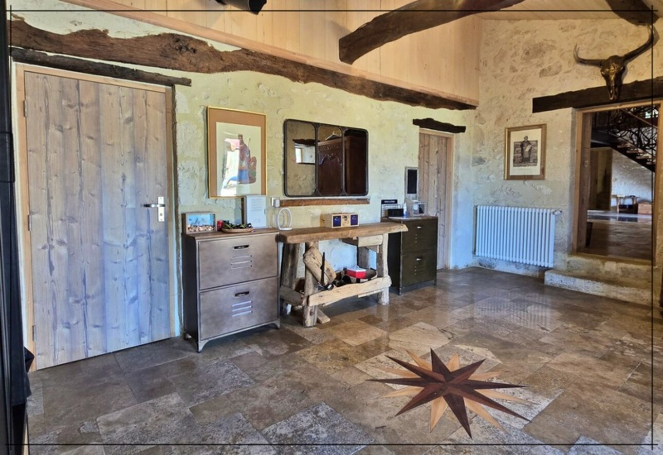 - Dès l'entrée, vous serez séduit par le sol en travertin et les pierres de Gascogne apparentes qui confèrent à cette demeure une authenticité et une chaleur incomparables.