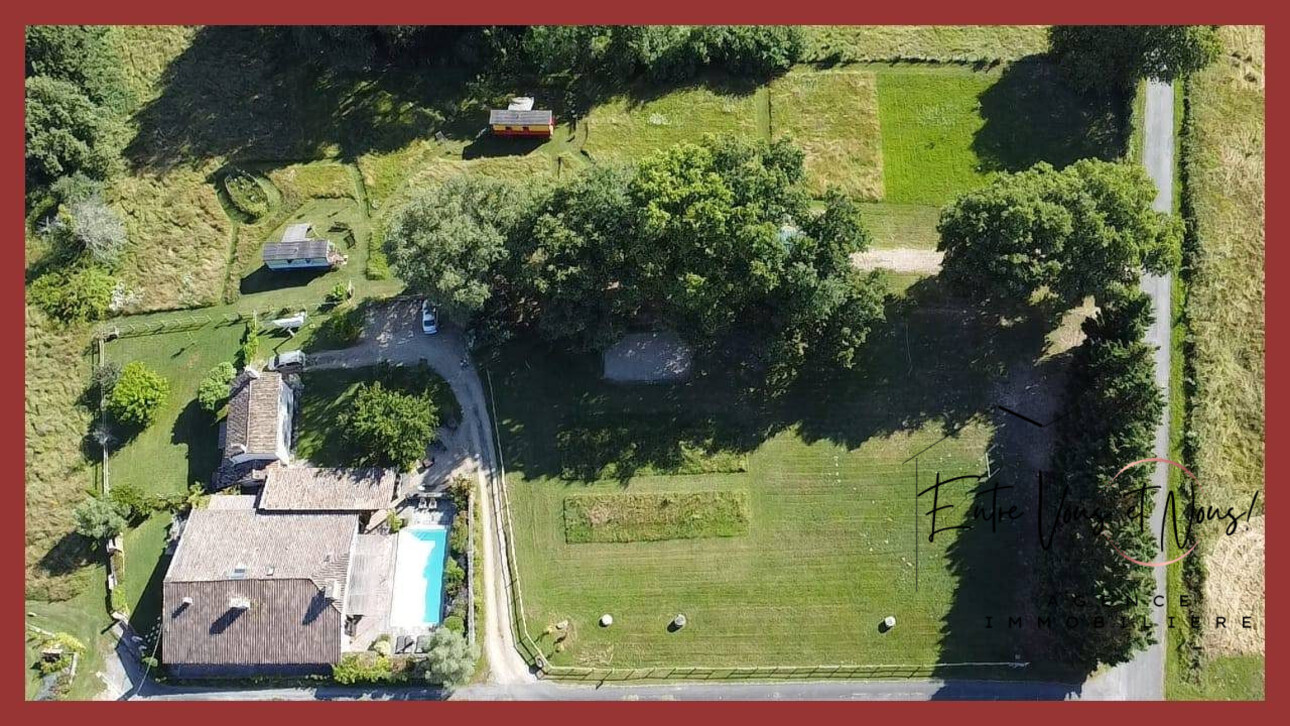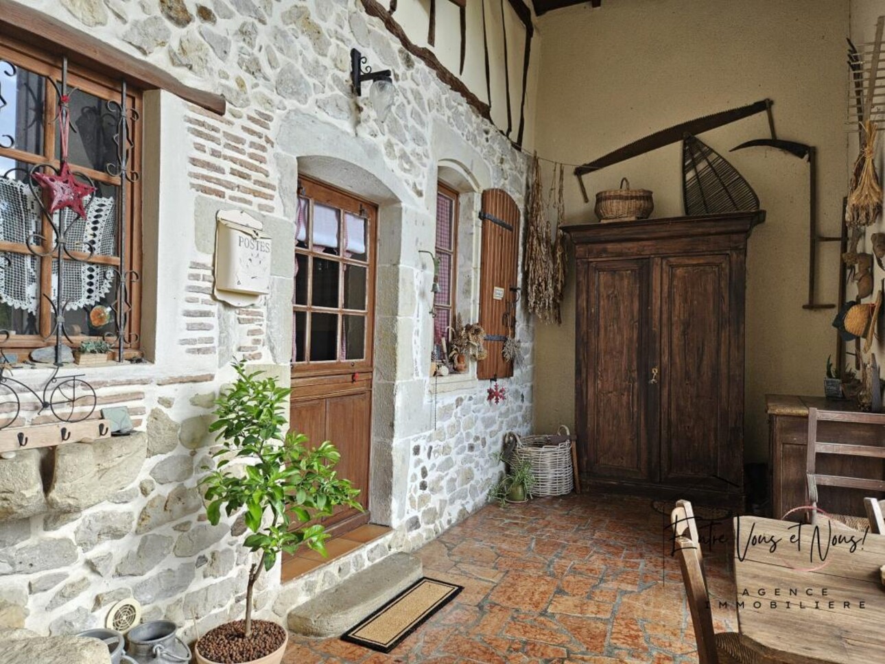 Votre agence immobilière Entre Vous et Nous présente cette propriété comprenant deux bâtisses en pierre du 18ème et du 19ème, toutes deux entièrement restaurées dans un souci de conservation du style. Un ensemble plein de charme et de cachet, entre vieilles pierres, carreaux de gironde, poutres et colombages.