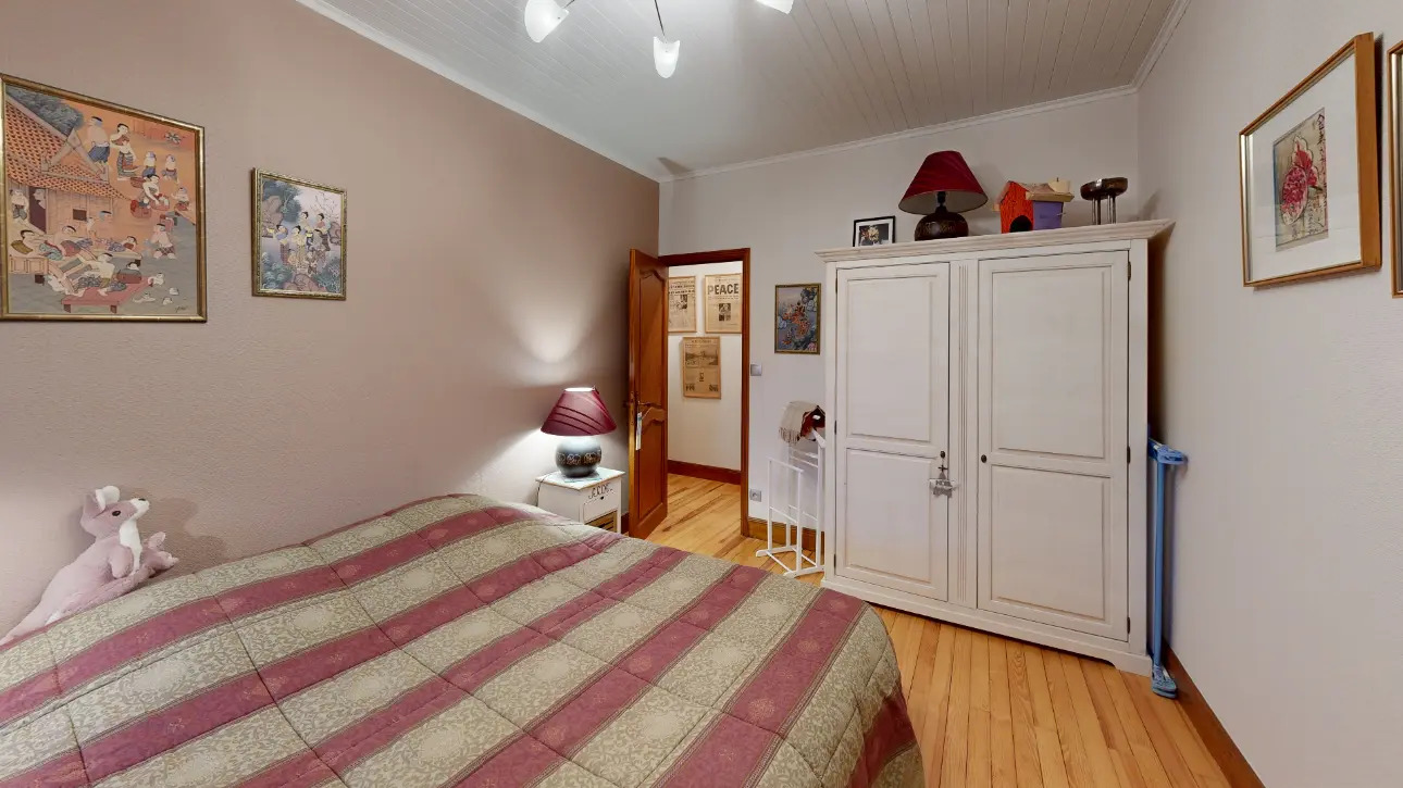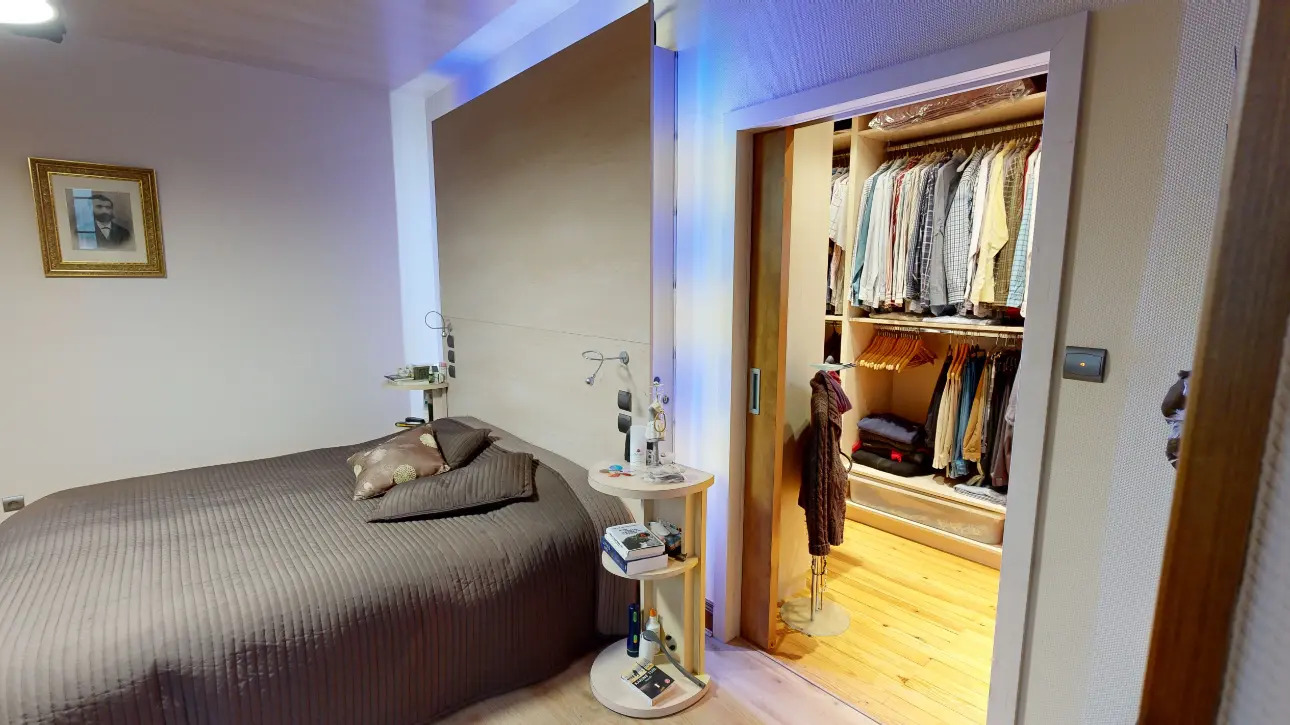 Un espace lingerie séparé avec ses grands placards de rangement, donnant sur une seconde grande pièce annexe avec une entrée indépendante pourrait aisément devenir un studio.