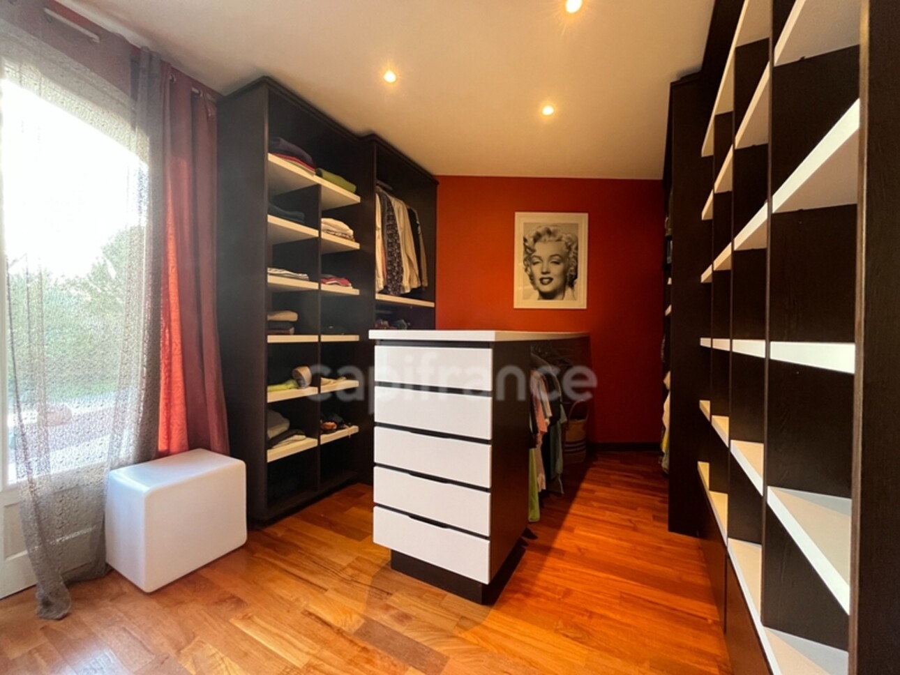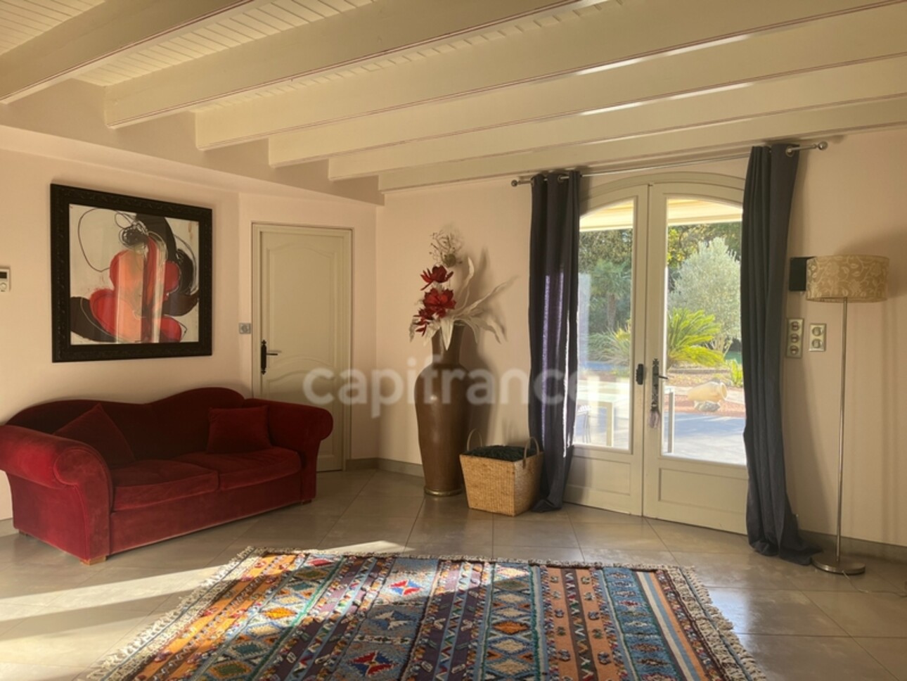 La maison principale s'ouvre sur un jardin paysagé et une piscine bordée de terrasses inondées de soleil. Spacieuse et chaleureuse, elle développe env. 260 m² :