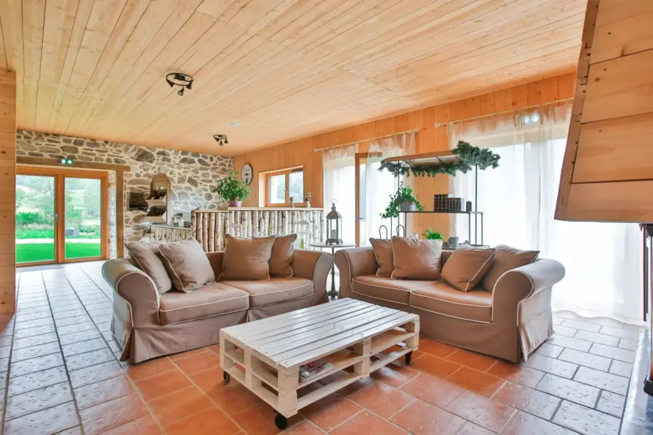 Le site est composé d’ une grande maison en pierre pouvant être la demeure principale ainsi que des chambres d’ hôtes car la bâtisse est idéalement conçue en deux parties avec une pièce de 71 m2 (2 douches-vestiaires-w-c) en spa professionnel. Une grande terrasse en bois de 70 m2 offre une vue exceptionnelle sur la nature environnante. La maison possède également 5 belles chambres indépendantes dont 3 sont équipées de douche et w-c , les deux autres ont une salle de douche et un w-c séparé. Salle commune, cuisine, séjour viennent compléter le bien. En empruntant un petit sentier qui traverse un ruisseau vous découvrirez 6 lodges de luxe fabriquées avec des matériaux haut de gamme possédant chacun leur spa privatif en bois. Ils sont agencés d’ une suite avec literie 160 x 200, d’ une salle d’ eau avec douche à l’ italienne XXL et ciel de pluie. Une petite cuisine équipée et mini-bar. Pergola bio-climatique et terrasse. (Tous avec une vue d’ exception et sans vis à vis). Un chalet PMR accessible handicapé de 37 m2 (1 chambre, WC, salon et 3 emplacements viabilisés avec 2 fosses septiques sont également sur le site. Divers bâtiments pratiques sont existants: -un bâtiment de 65 m2 avec four à pain semis fermé pouvant recevoir l’ été pour des repas situé à côté d’ un point d’ eau -un chalet d’ accueil -un garage de stockage Et un bâtiment bien-être de 3 espaces différents (massage, tisanerie et pièce de sel) (pièce de sel, espace innovant dans le secteur) Ainsi qu’ une partie cuisine toute équipée pour pouvoir confectionner les repas est présente dans un bâtiment annexe avec surface de stockage. Une production en électricité par panneau solaire avec circuit général (36 kw) auto consommation. (Panneaux sur 5 lodges et le bâtiment four à pain) Plus de 5 hectares de terre sont constructibles pour le loisir ce qui laisse une grande possibilité d’ agrandissement du domaine avec des spots de vue exceptionnel. Un bois compose la propriété le tout attenant et un ancien étang était présent. Le matériel nécessaire tondeuse pro (35cv), micro tracteur avec fourche, mini pelle, golfette et divers petits matériels pratiques. Le fond de commerce (site et pub) ainsi que le mobilier haut de gamme sont dans le prix. Le site est vraiment exceptionnel et rare d’ emplacement, à voir absolument pour les personnes voulant évoluer dans ce milieu avec une très grande capacité pour agrandir et augmenter la capacité locative. L’ existant étant déjà très luxueux. Prix total de 2 870 000 € dont 120 000 € de frais d’ agence à la charge de l’ acquéreur.