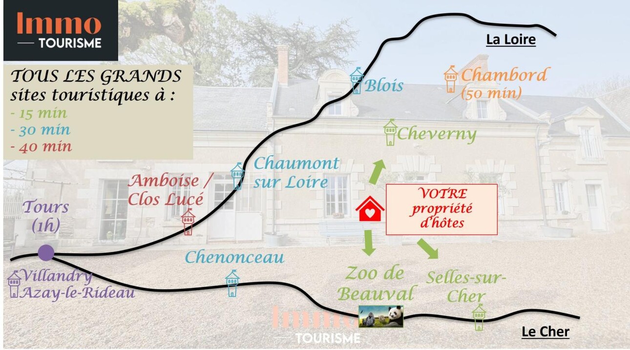 Cette propriété jouit d'un emplacement stratégique entre Zoo de Beauval et Châteaux de la Loire.