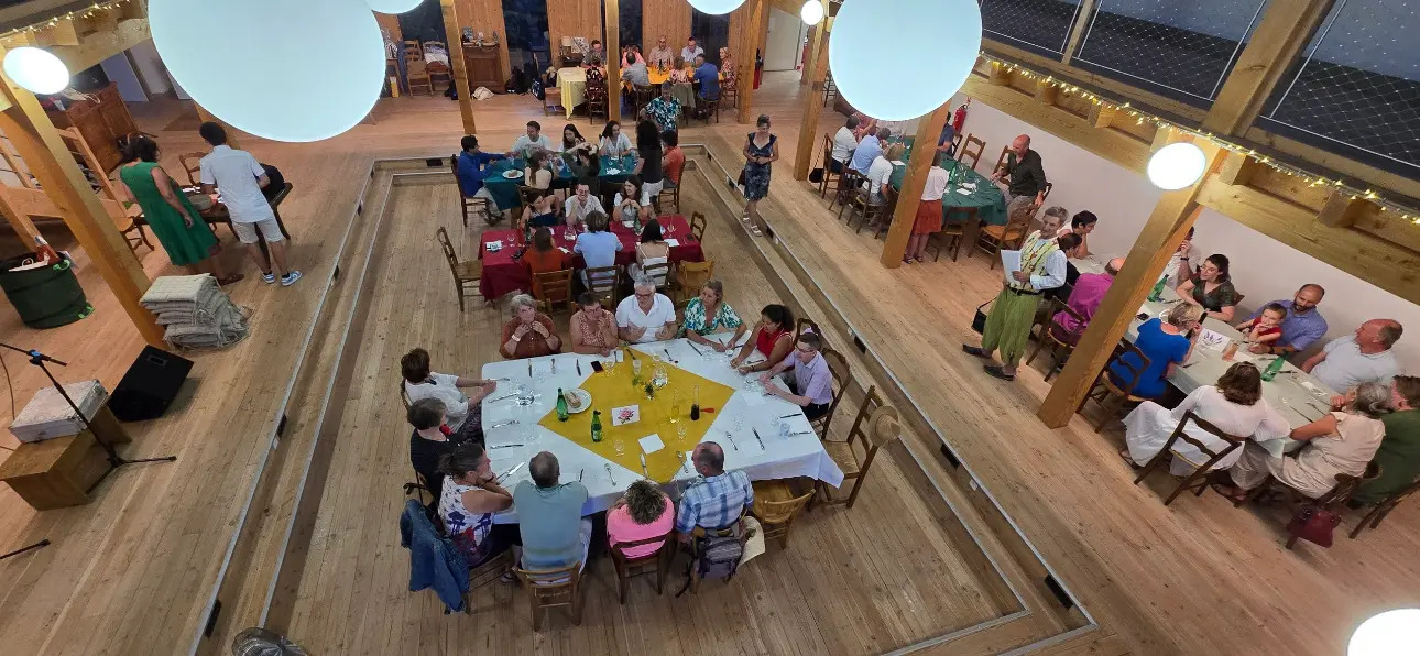 Propriété de 7 Ha clos avec bâtiment de 1800m² aménagé en partie, à 5 min de la sortie d’autoroute A72 de St Germain Laval A 50 min de Lyon et Clermont Ferrand, 40 min de St Etienne, 30 min de Roanne Bien proposé à la location ou à la vente selon le projet avec possibilité d’accompagnement. Idéal pour projet de restaurant, évènementiel, avec possibilité d’autres activités comme la transformation de produit, la formation… Description extérieure : Production certifiée BIO depuis 2022 4 réserves d’eau avec réseau de distribution enterrée, verger de 150 arbres fruitiers, 3000 m² de fruits rouges, idéal pour faire des confitures. Espaces aménagés (labyrinthe, gloriette, pyramide d’aromates…) Une géode (demi-sphère) de 30 m² et une cabane de 20 m² avec couchage 1Ha est exploité par 2 jeunes maraichers en fermage depuis déc 2024, 2Ha sont laissés à la nature. Parking 35 places Description du bâtiment : Grande salle de réception de 240 m² avec mezzanine de 100 m², théâtre de 60 places pour animation, projection, formation…. Non chauffé Espace accueil de 40 m² Cuisine professionnelle équipée (four, frigo, lave-vaisselle…) de 85 m² Autre aménagement possible, y compris logement. 140m² sont loués à 2 maraichers