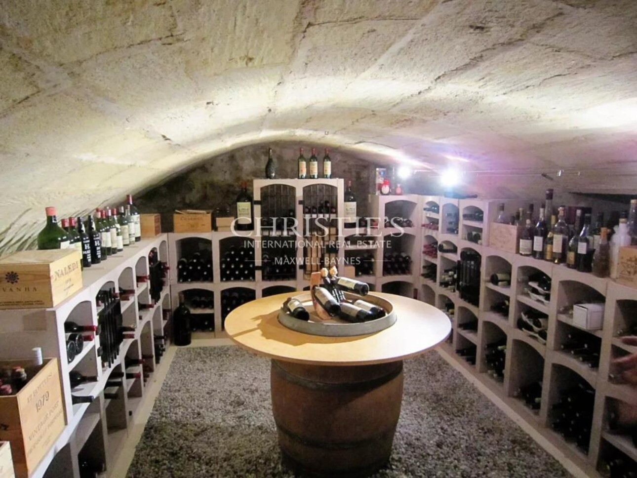 Le grand hall d'entrée dispose d'un beau sol en pierre avec un magnifique escalier de pierre. On entre dans un très grand salon de 50 m² avec une vue plein sud sur le vignoble et un accès à la terrasse en pierre. La salle à manger de 35 m² est reliée au salon et mène ensuite à la cuisine très bien équipée. De l'autre côté du hall d'entrée il y a un salon plus petit et très bien aménagé de 35 m² avec une porte menant à la cave à vin voûtée de 12 m².