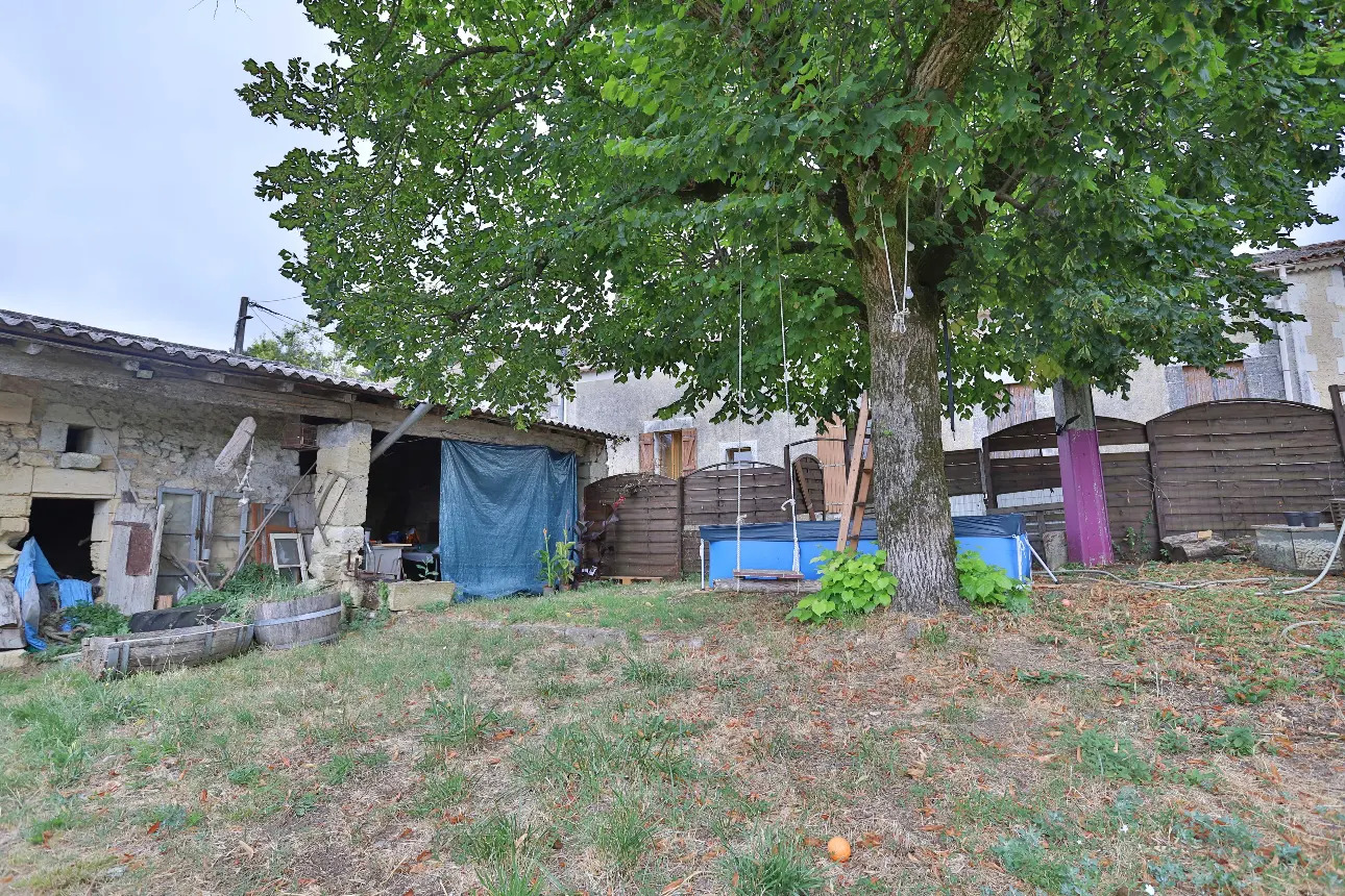 Un garage en pierre de 72 m² (divisé en trois parties), un débarras, ainsi que deux hangars métalliques fonctionnels de 80 m² et 138 m². Les honoraires d'agence sont à la charge du vendeur.